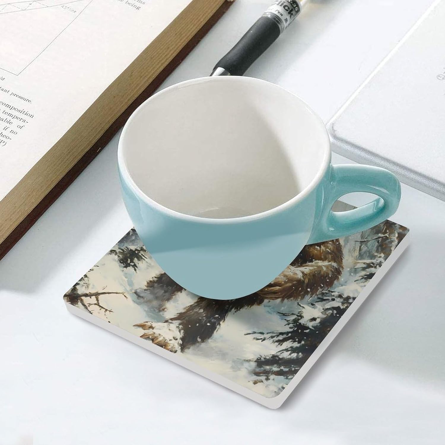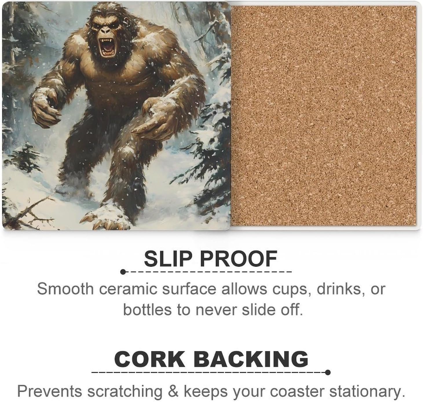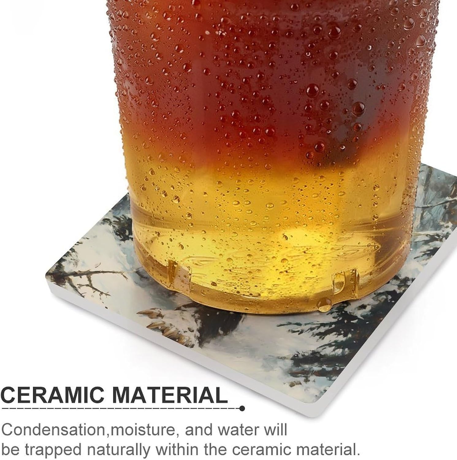 Cute Printed Absorbent Ceramic Coaster for Drinks Funny Coasters with Cork Base Suitable for Kinds of Mugs, Cups, Prevent Tabletop Wear And Scratches, and is Easy to Clean