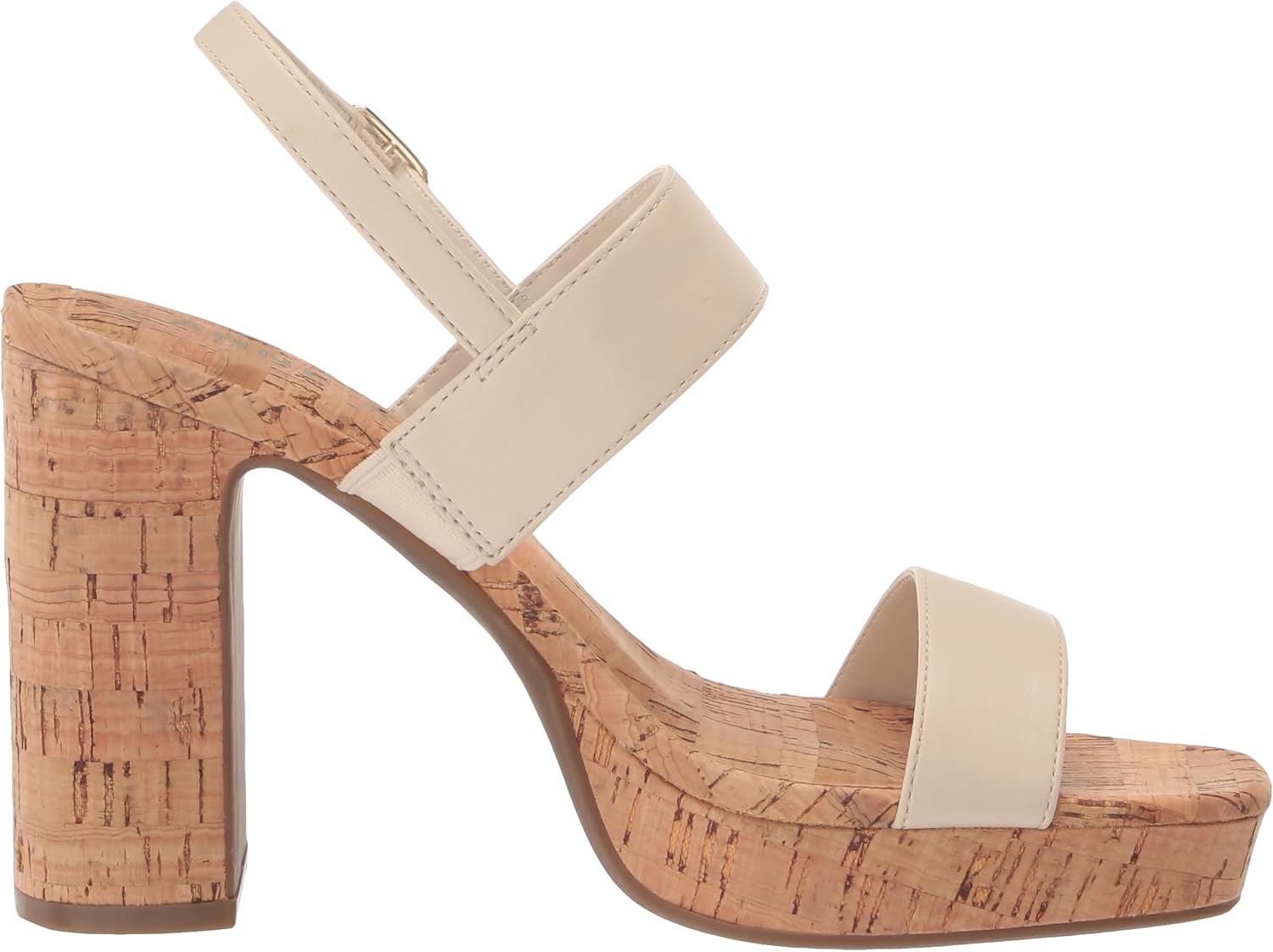 SQUARE TOE BLOCK HEEL SANDAL WITH A BUCKLE CLOSURE