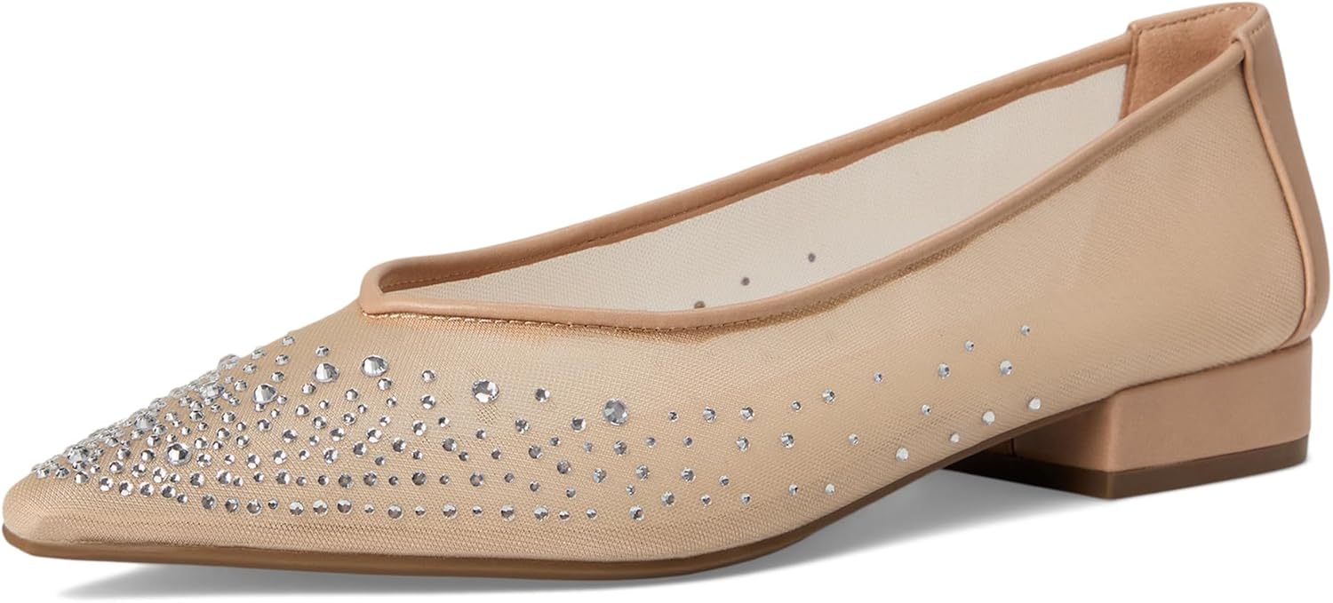 Introducing the Carlisle-Crystal, a modern ballet flat crafted from mesh and adorned with sparkling crystals. This chic and versatile shoe adds a touch of glamour to any outfit.