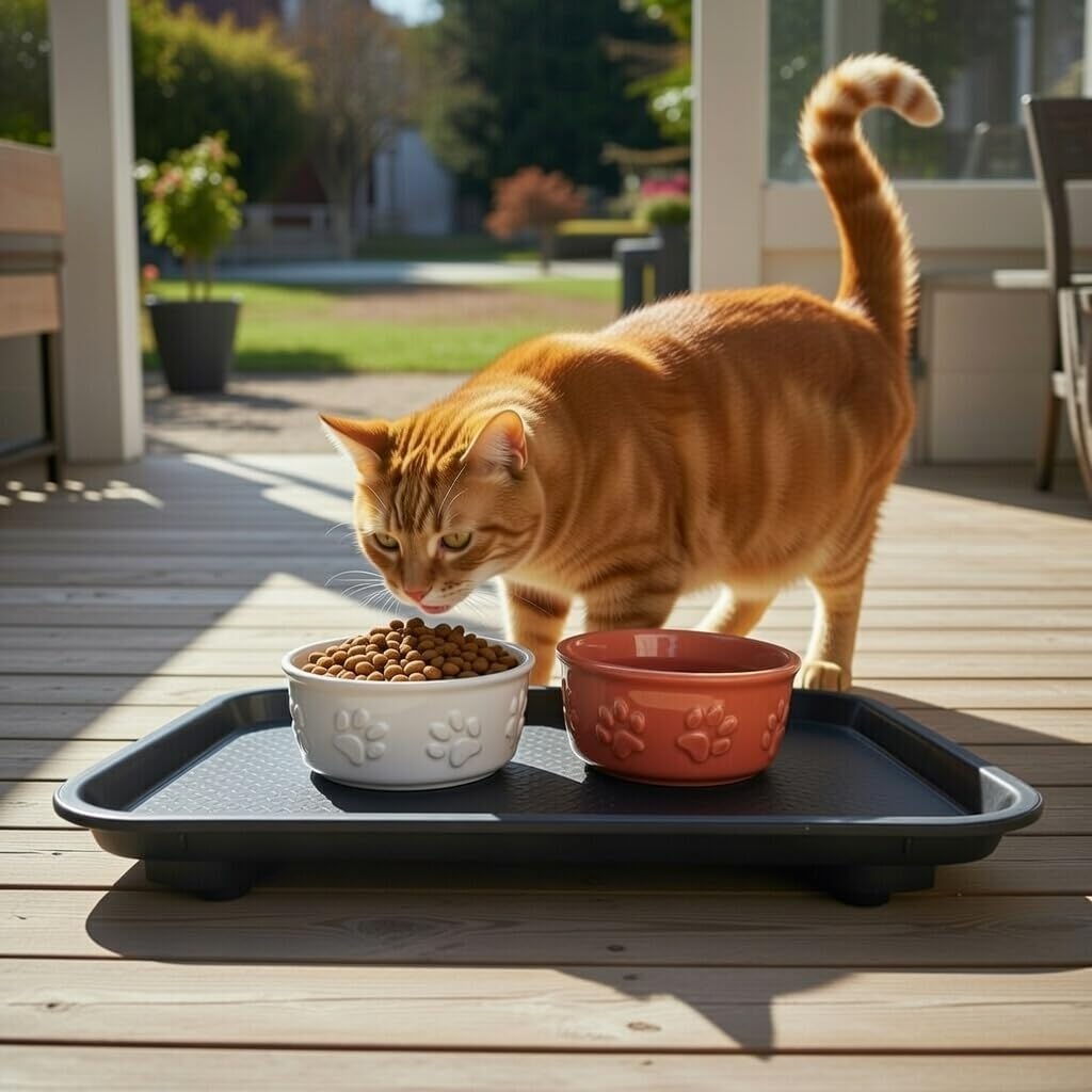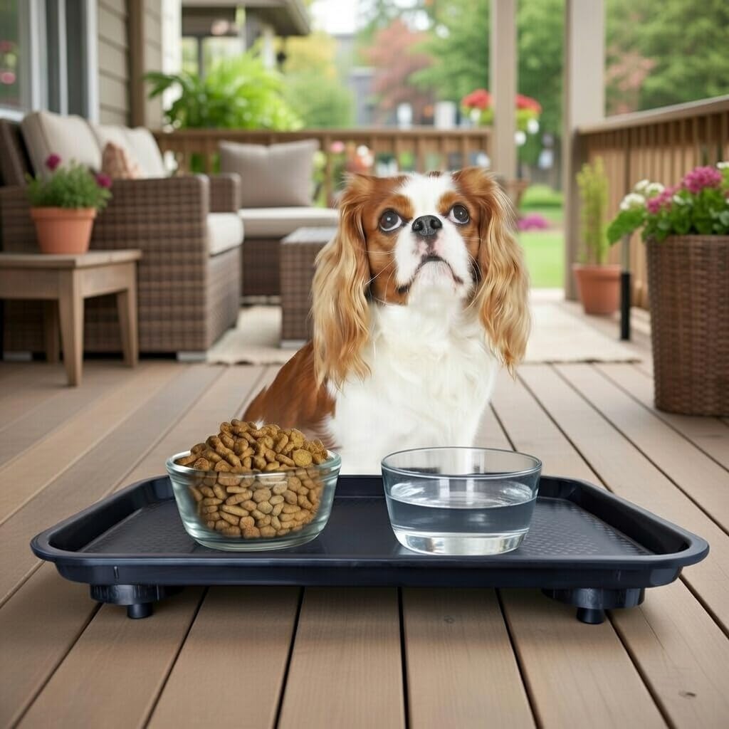 Includes one black tray, four BugSnub legs with adhesive pads, and four packets of BugSnub insect blocking gel. Assembled tray dimensions: 12x16x2 inches. Working area on tray 10.625 x 14.625 inches. BugSnub gel is a white mineral oil based, food grade product that creates a physical barrier that ants can't walk across. BugSnub gel is made in the USA. The gel is applied to the underside of upside down cups, so it's protected from large debris like dropped pieces of pet food. Never spill or refill another messy liquid moat. BugSnub gel is designed to keep its goopy consistency at a wide range of temperatures, so it won't melt or dry up even on a hot summer day. One application can last all year. BugSnub uses impact resistant polypropylene trays made in the USA. These trays will not break when dropped, torqued, or stepped on. The textured surface helps bowls stay in place.