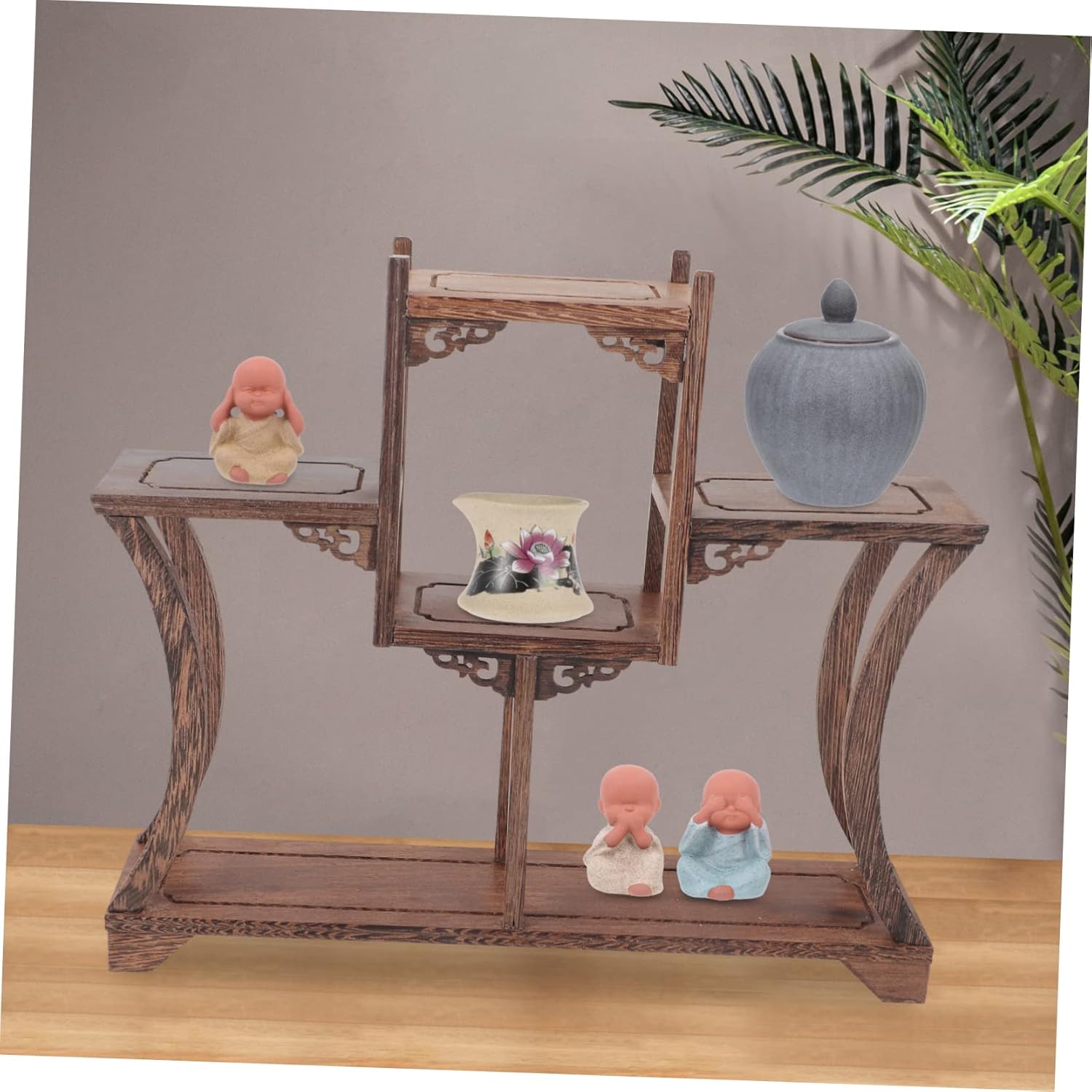Package Include 1 x Storage Rack Features -Material:Wood tea cup display stand -Color:Coffee store display shelves -Size:34.00X31.00X7.00cm/13.36X12.18X2.75in teapot & teacup display stand - Perfect display rack for antique, Chinese style tea pot, tea cup, jade trinket display shelf. - The excellent workmanship of it will bring you a merchandise display shelf. - The shelf represents a kind of taste, household culture, from details table display shelf. - The antique display frame enjoys endless aesthetics and a sense of historical beauty wood pot holder. - Simple and generous, design, has an and beautiful outlook bonsai pot shelf.Goods Informationdisplay stand for crafts Its design looks vintage and chic.asian furniture It is also a perfect decoration for room, restaurant and tea house.teapot & teacup display stand This antique displaying stand is made of for and to use.teacup display holder You can put your beloved and cherished antiques