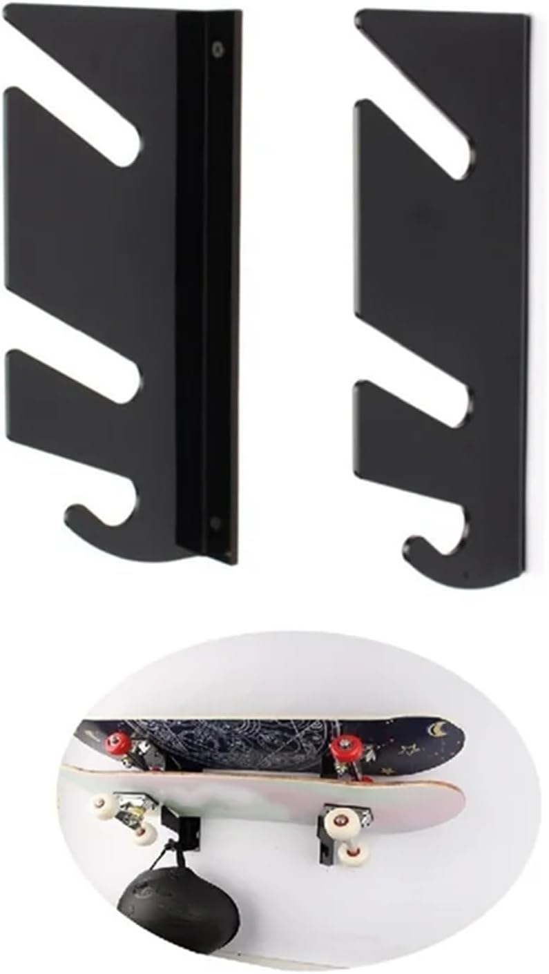 Universal : The hanger is flexible. Please adjust it with your hands to fit your different sizes of boards- as cruiser boards, penny boards , skateboards, longboards, etcProduct name: Skateboard Wall MountMaterial: AcrylicThickness: 4mm/0.16 inchesProduct size: about 17x12.5x3cm/6.69x4.92x1.18 inchesPacking List:3 pair x skateboard holder12 pcs x screws12 pcs x expansion tubesNote:Due to different lighting and screen settings, the item color may be slightly different from the picture.Due to different manual measurements, please allow a 1-2cm difference in size.