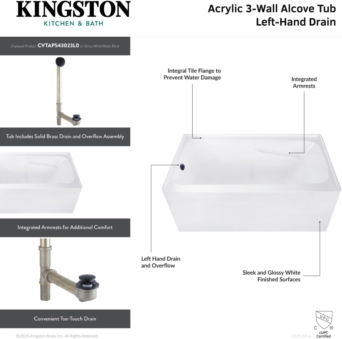| Item Type Name | 54" Acrylic Rectangular 3-Wall Alcove Tub with Armrests, Left Hand Drain |