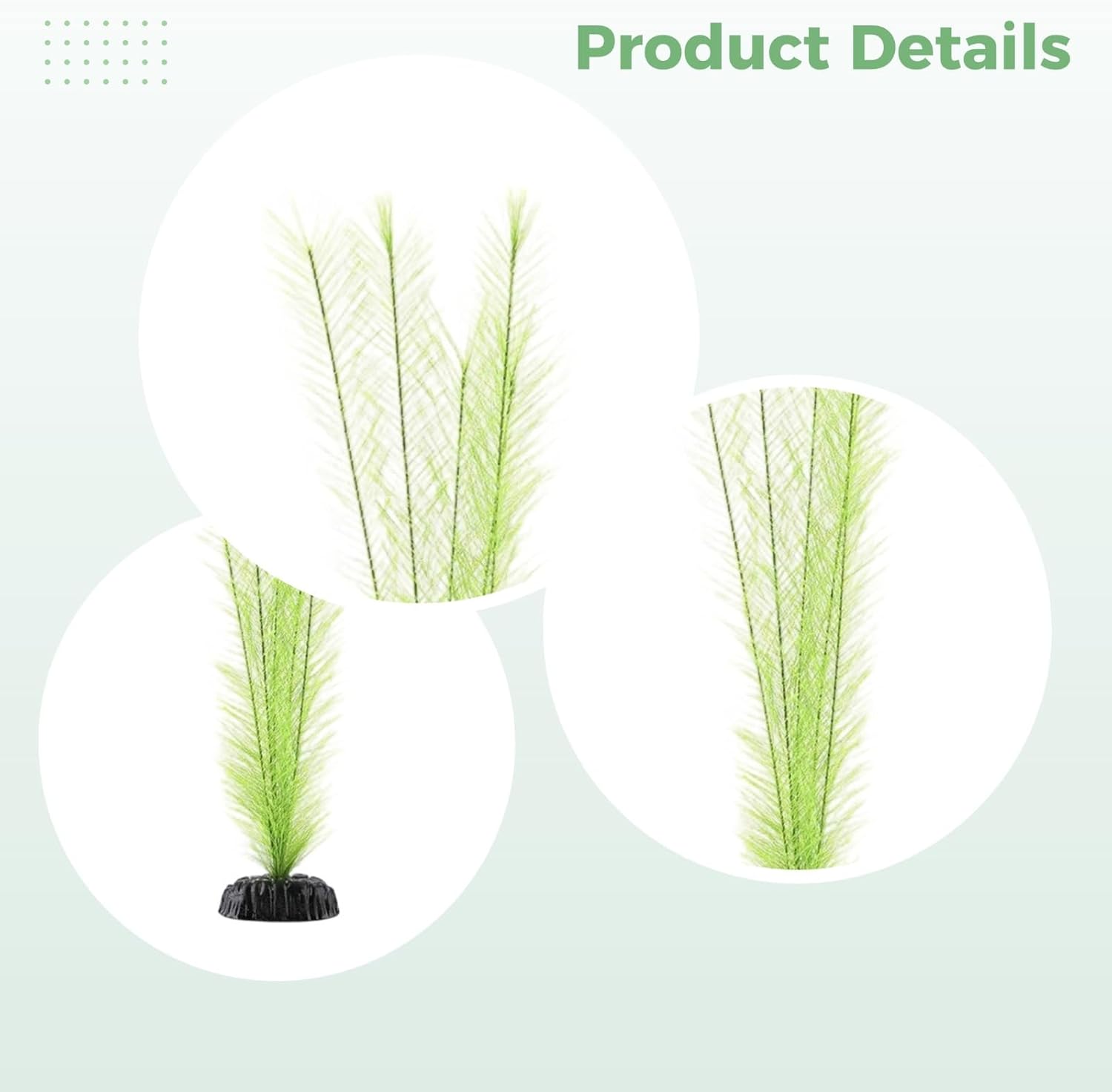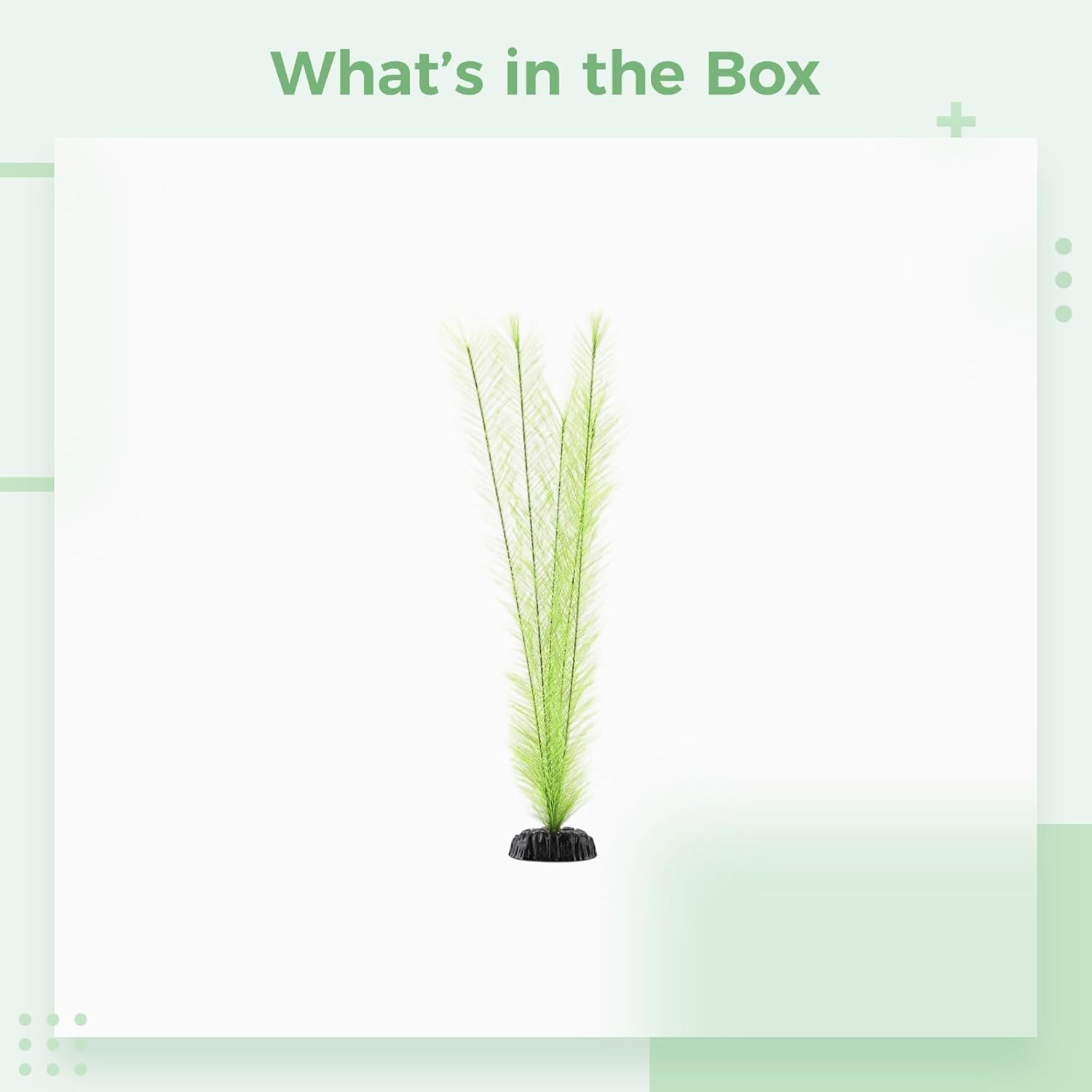 Artificial aquarium plant color: Green Fake plant material: Plastic Lifelike plant size: S: Height: 30cm(11.81in) M: Height: 40cm(15.75in), base L*W*H: 7*4*2.5cm(2.76*1.57*0.98in) Package includes: 1 x Artificial aquarium plant Note: - Package includes only 1 fake aquarium plant. - Please refer to the measurement. Tiny measuring error is allowable in normal range. - There might be a little color difference due to the monitor, camera or other factors, please refer to the physical item.