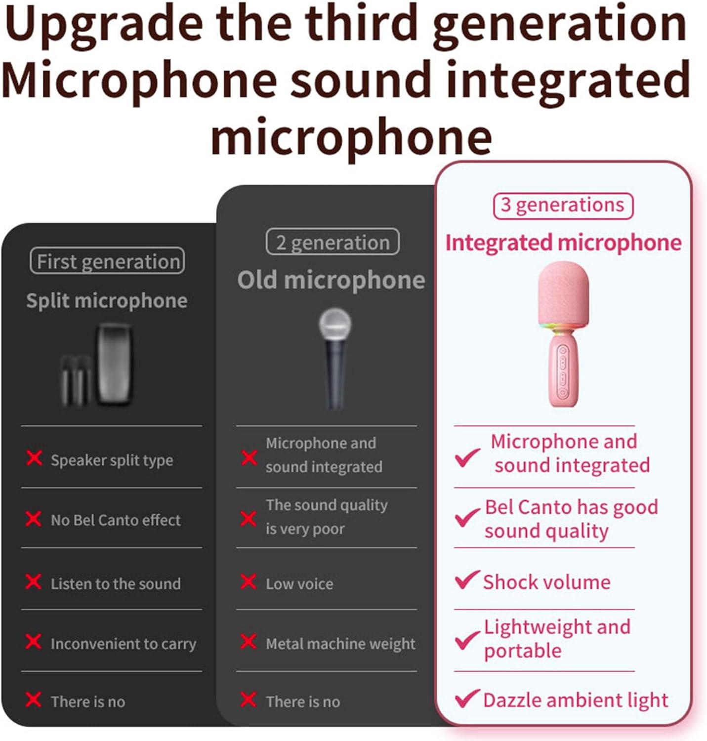 Specifications: Item Type: Karaoke Mic Material: Plastic, Electronics Model No.: K18 Version: 5.3 Connection Distance: 10M/10.9yd Memory Card: Maximum Support 128GB (not Included) Speaker Power: 5W Frequency : 20HZ to 20KHz Charging Time: 3.5‑4 Hours Pickup: Back‑pole Condenser Microphone Battery Type: Built in 1200mAh Lithium Battery (included) Voltage Parameter How to Use Turn on and use Package List x Microphone x Charging Cable x Instruction Manual