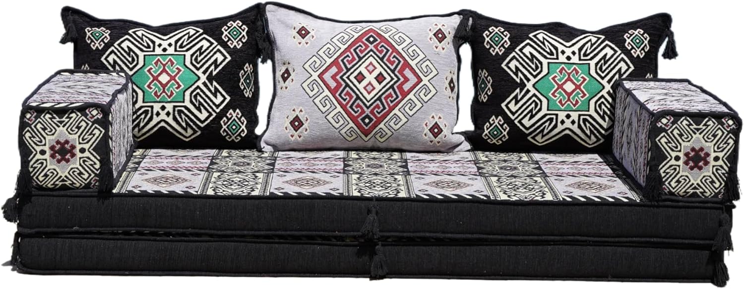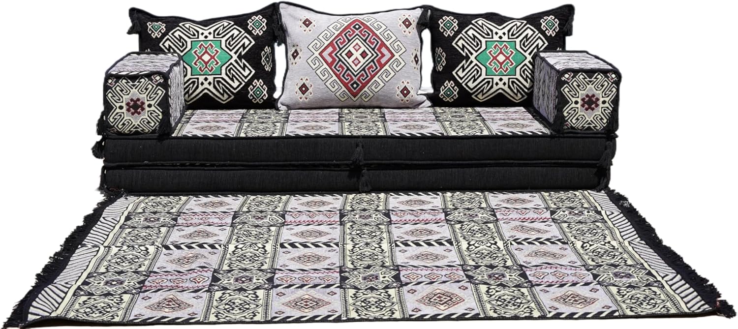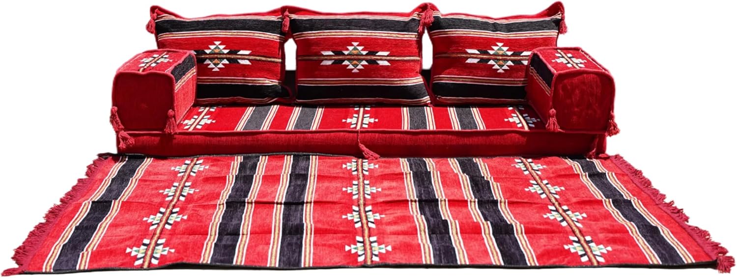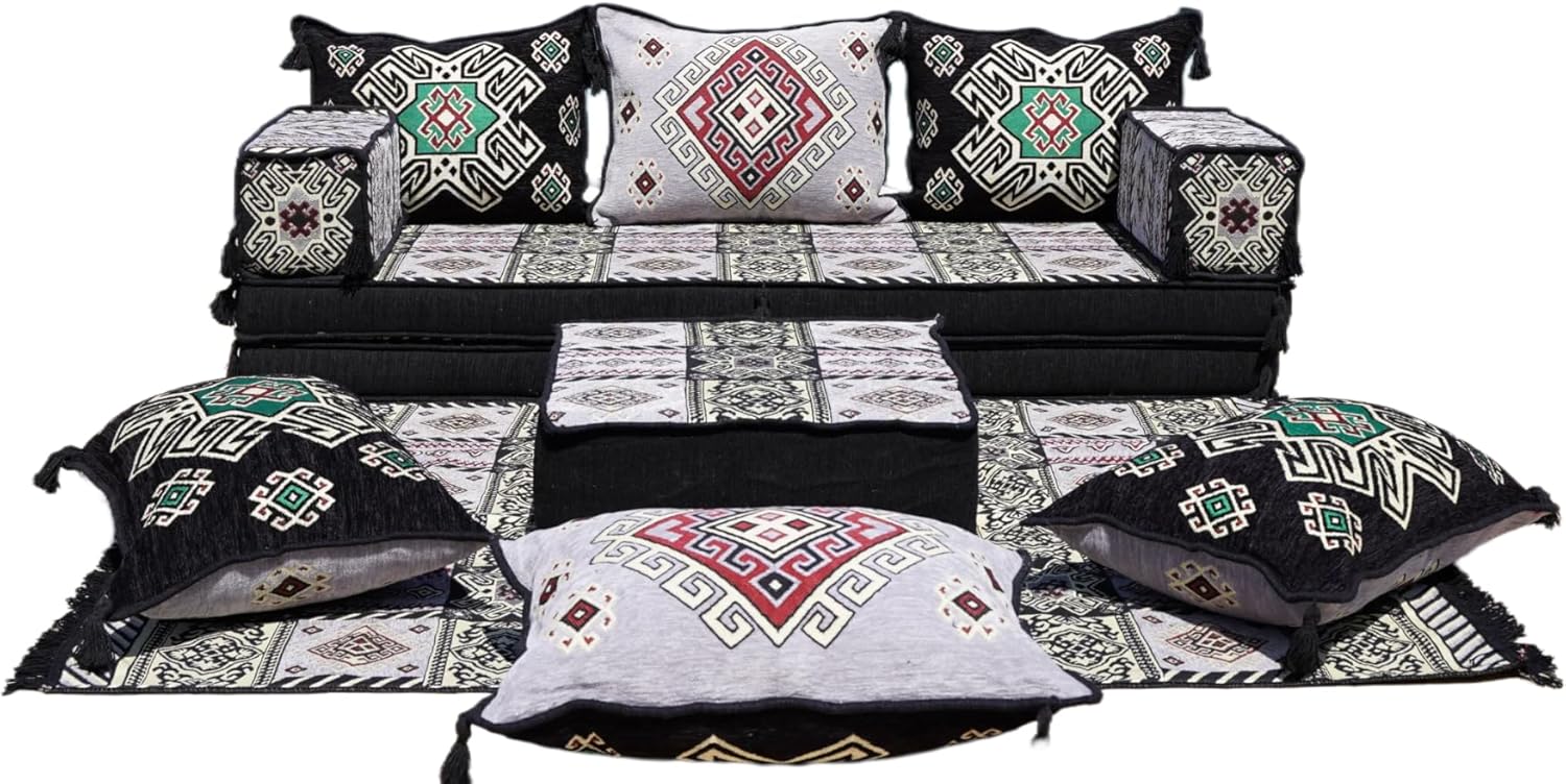 You will receive products in the variant you selected from the listing page. This sofa set comes in 11 separate pieces. If you choose 'Sofa Full Set / 4'' Thickness' you will get these: -1 Floor Seating Cushion (190 x 70 x 10 cm / 75 x 27 x 4 inch) -3 Backrest Pillows (70 x 50 / 27 x 20 inch) -2 Armrest Pillows (50 x 20 x 20 cm / 20 x 8 x 8 inch) -3 Pouffs Pillows (70 x 50 / 27 x 20 inch) -1 Matching Rug (120cm x 180cm / 47 x 71 inch) -1 Ottoman Couch (60 x 60 x 20 cm / 24 x 24 x 8 inch) * The floor sofas are not freestanding, they need to lean against a wall or something hard behind * We can customize this product upon your request * All covers include their foam filling inserts * All covers are zippered * Beautiful texture and soft to touch * Comfortable to sit or sleep on * Top-quality finish and workmanship * Excellent for homes, offices, hotels, cafeterias, etc. * Machine washable