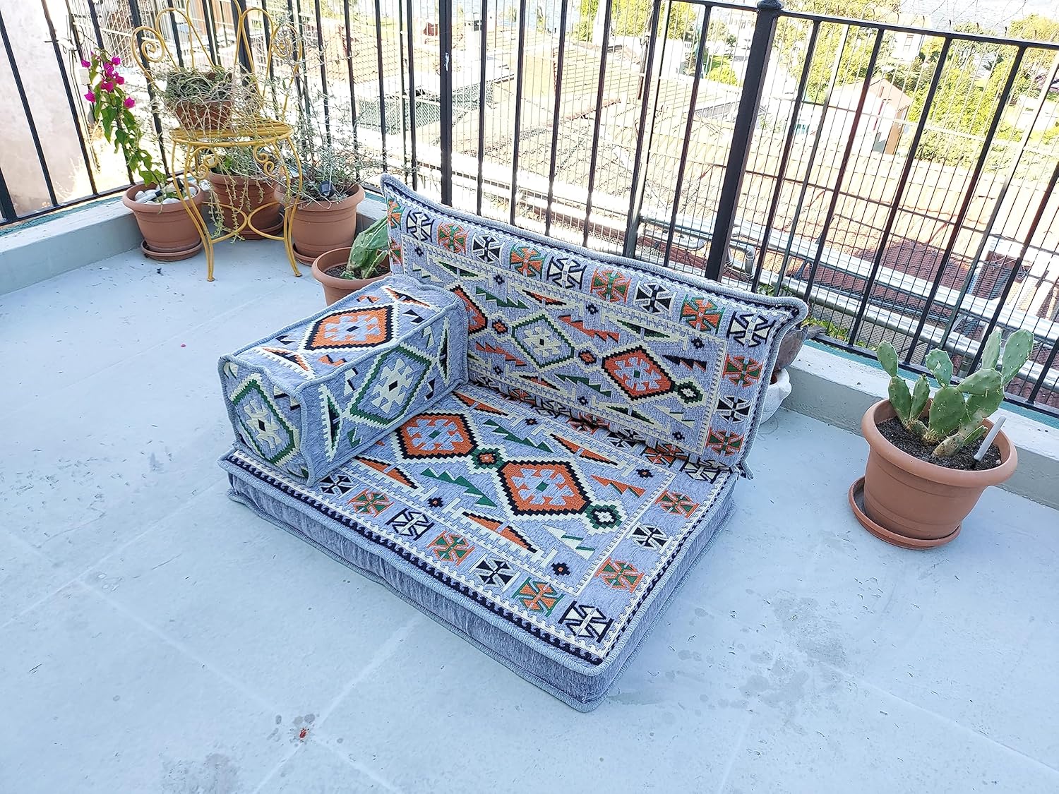 You will receive products in the variant you selected from the listing page. This sofa set comes in 3 separate pieces. -1 Floor Seating Cushion (95 x 70 x 10 cm / 37 x 27 x 4 inch) -1 Backrest Pillows (90 x 40 x 10 cm / 35 x 16 x 4 inch) -1 Armrest Pillows (50 x 20 x 20 cm / 20 x 8 x 8 inch) * The floor sofas are not freestanding, they need to lean against a wall or something hard behind * We can customize this product upon your request * All covers include their foam filling inserts * All covers are zippered * Beautiful texture and soft to touch * Comfortable to sit or sleep on * Top-quality finish and workmanship * Excellent for homes, offices, hotels, cafeterias, etc. * Machine washable