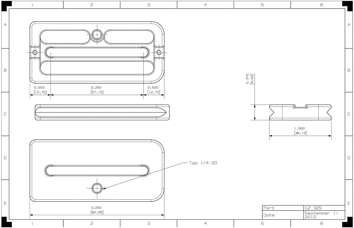 3.25 inch lens plate. One captive style slot and one 1/4-20 tapped hole. Two safety stops. This prevents free fall when the clamp is not full closed. (M3 Screws). Captive screw will be about 0.3 inches above plate surface. If you are planning on using a plate with a blind hole, please check the depth of it. You may need a shorter screw. Double-dovetail design allows for dual clamping surfaces on rail. Used with various lenses.