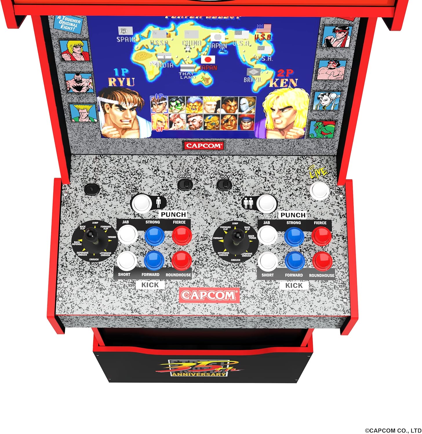 Bring the authentic arcade experience home with the Arcade1Up Capcom Legacy Arcade Game Yoga Flame Edition. Designed for retro gaming enthusiasts, families, and collectors, this 3/4 scale arcade cabinet features artwork inspired by the iconic Street Fighter series and includes 14 legendary Capcom games in a single machine. Experience the golden age of arcade gaming with a vibrant 17-inch full-color LCD display, real-feel joysticks, and responsive action buttons built for competitive two-player action. For the first time in the Capcom Legacy series, this 2022 edition includes Wi-Fi Live functionality, allowing you to connect to your home network and challenge opponents globally in supported titles like Street Fighter II Turbo: Hyper Fighting, complete with online leaderboards.