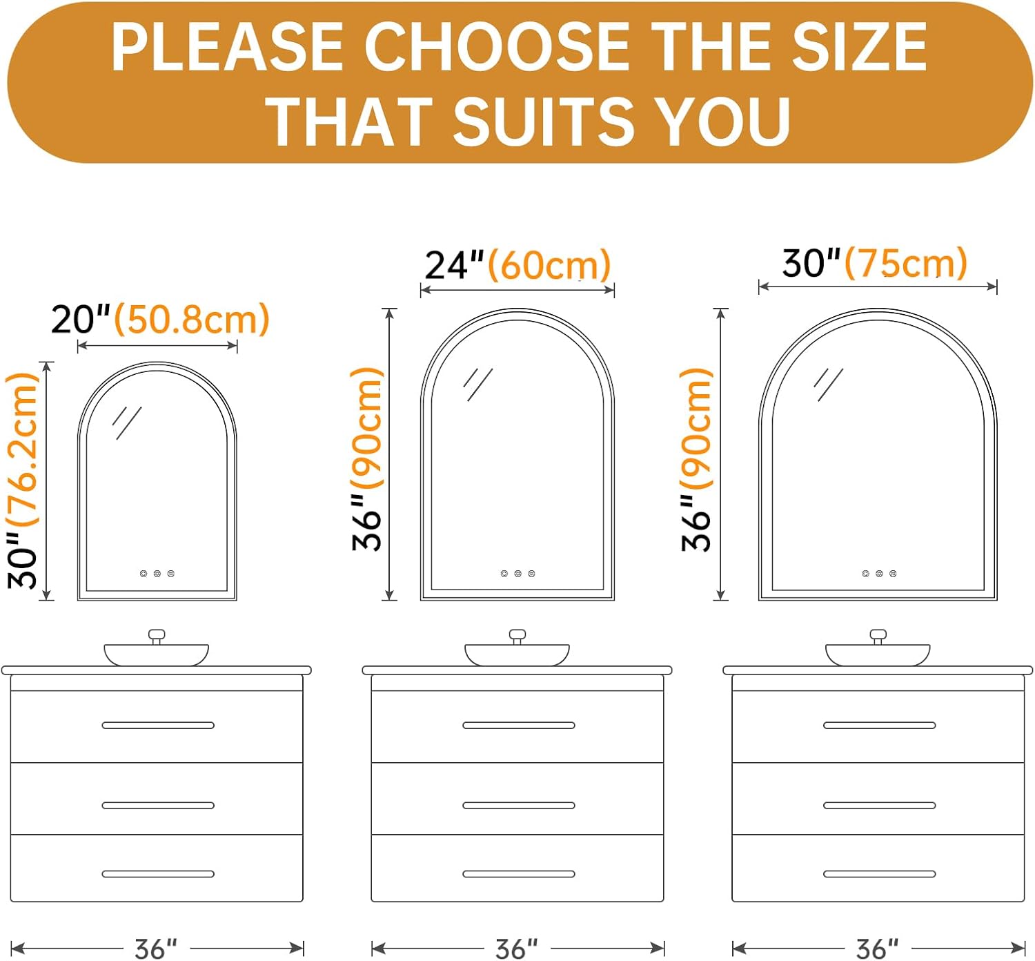 | Included Components | 1 x Aluminum Alloy Hanging Bracket, 1 x Arched Backlit Mirror Bathroom, 1 x Installation Instruction, 2 x Expansion Screws, 2 x Screws |