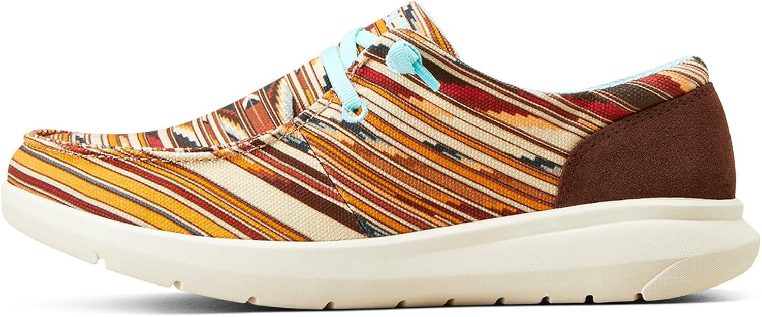 The ARIAT Hilo shoes for women are ultra comfortable and super comfortable, the kind of shoes you can just throw on and go. With so many fun patterns and easy no-tie laces, you might want more than one pair. Designed with a FLX foam sole that has a lightweight, bouncy feel that cushions every step, combined with a breathable and cushioning insole provides the comfort you need to walk your day. Simply slip these shoes on with the elastic lace entry for a casual moccasin toe style that is ideal for any casual outing. These women's slip on shoes are finished with a fabric upper and mesh lining that feels great for a relaxed atmosphere. Effortless style and comfort come together with these women's shoes, making them an ideal companion for everything the day brings.