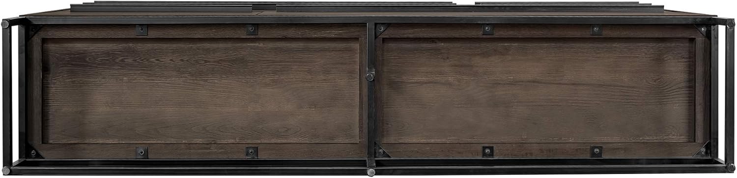 Immerse your home into mid-century aesthetics with the Armen Living Nevada Sideboard Display Stand. This sideboard features a durable mixed wood frame with smooth oak wood grain finish, straight horizontal wood leg base, a spacious shelf on both sides, and 2 drawers on each side with soft close function. Nevada features an abundance of storage for your silverware, dishes, and other dining room finery. Boasting a mid-century modern style this sideboard features a solid construction with a pleasing look and practical functionality. Perfect as a sideboard, credenza, buffet cabinet or display stand and can also accommodates flat-screen TVs up to 60” wide as a living room or lounge area TV stand. This item is a part of the Armen Living Nevada collection but can be mixed and match in any rustic or modern style home. Included: 1 Buffet/Sideboard Material: Metal, Solid Oak Feature: Metal leg based are design for sturdiness and durability Feature: Spacious top that can accommodates flat-screen TVs up to 60” wide or any décor display Feature: 4 Specious drawers and 2 hatches Feature: Soft closing runner/hinges function Assembly Required: Yes Ships In: 1 Boxes Dimensions: 72. 6 W X 15. 7 D X 33. 2 H Cabinet Dimensions: 72. 6 W X 15. 7 D X 33. 2 H Drawer Dimensions: 20. 5 W X 13. 7 D X 6. 1 H Soft Close: Yes Finish: Smoke Comes with standard 1 year limited NOTE: Color and saturation may vary due to lighting and monitor/phone screen settings