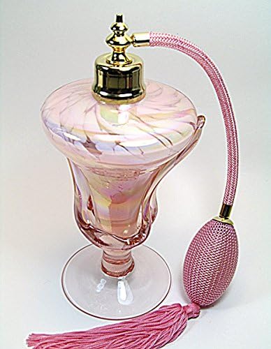 Material: Crystal glass made by hand and mouth blew. Size: 81 mm x 81 mm x 170 mm ( 1 inch = 25.4 mm ) Capacity: 110 ml. Finished: Pink/ opaque glass and bright-colored with pink tassel spray mounting. Genuine brass collar attached. Feature: Perfume refillable. Presents for all occasions. Small funnel attached.