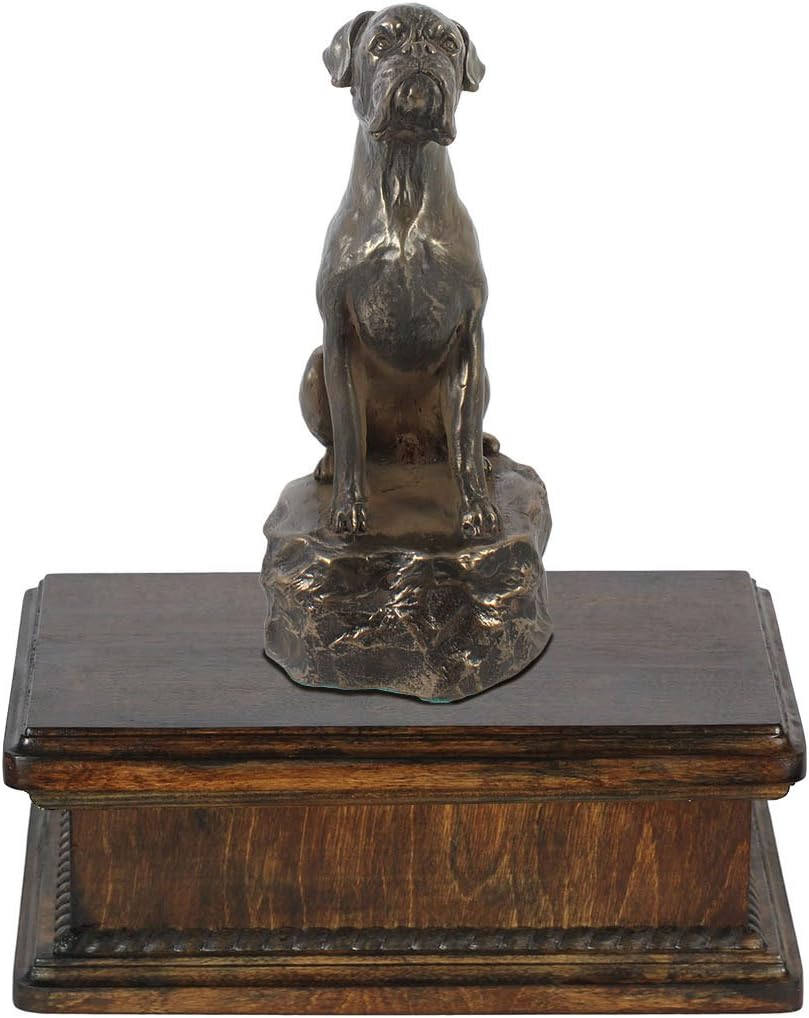 Handmade with precision and care, this urn stands as a testament to the enduring bond between you and your furry companion. Crafted from a solid birch wood base, this urn provides durability and longevity. The artistic touch comes to life with a choice of statues, including our exclusive Dog mama statue, symbolizing the nurturing love that transcends time. The statue is intricately crafted from Cold Cast Bronze, adding a touch of artistry to the memorial. Brass handles and wreath-shaped decorations embellish the urn, infusing an element of elegance. The removable lid enhances practicality, making it seamless to place your pet's ashes inside. This thoughtful design allows for ease of use during a difficult time, reflecting the deep love and respect you hold for your cherished companion. Measuring 21 x 29 x 22 cm, this urn provides ample space for your pet's ashes. Beyond its functional purpose, it becomes a timeless piece of art, radiating style and elegance. It is more than just a container; it's a dignified and personalized tribute that symbolizes the everlasting love and companionship you shared with your pet. Honor their memory with the Art-Dog Sitting Urn, where style meets sentimentality.