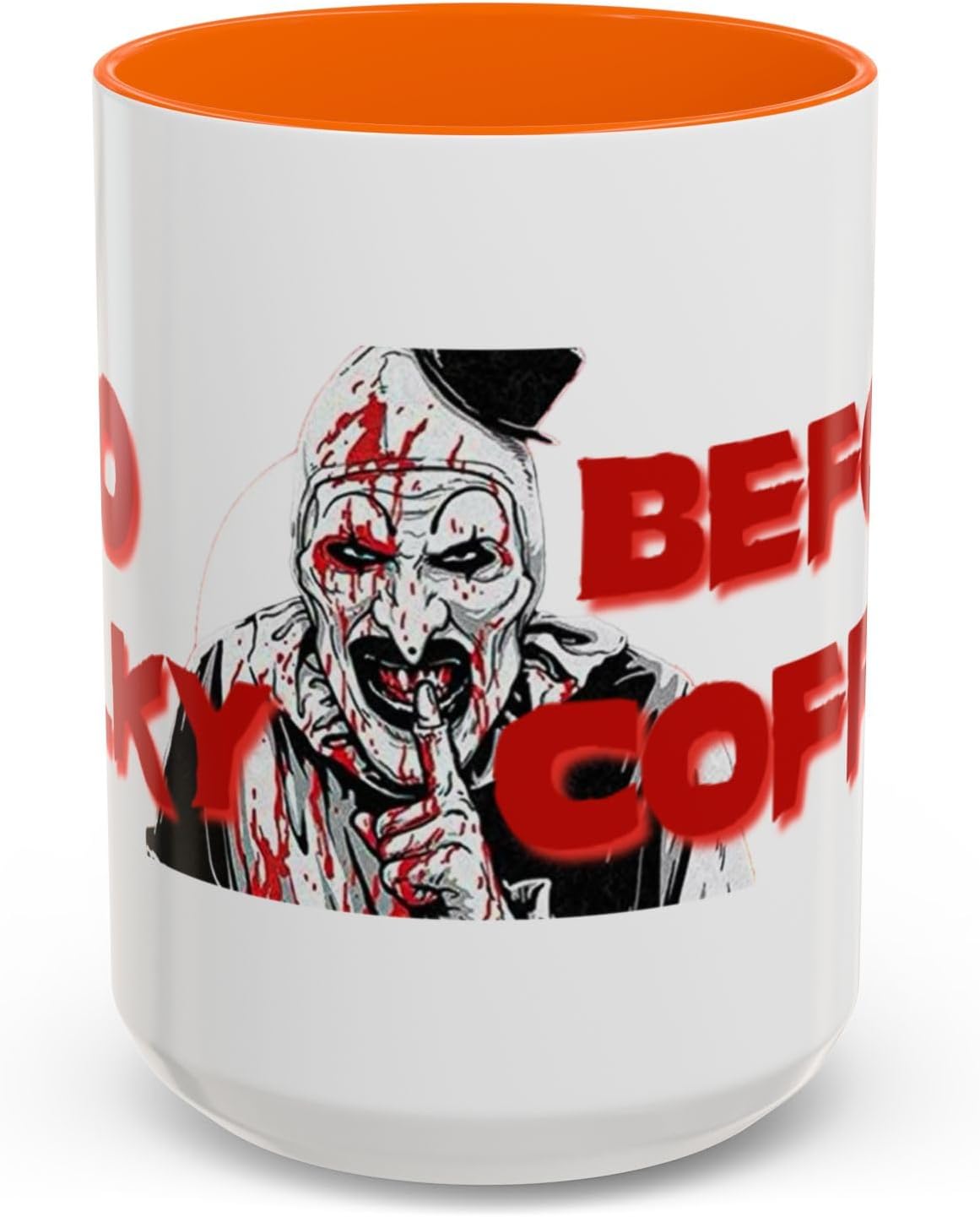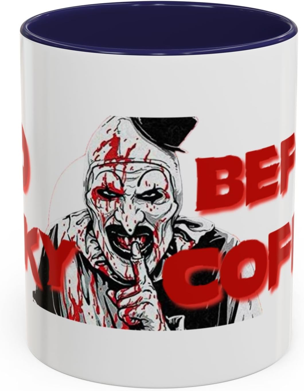 Accent Coffee Mug – Art the Clown Edition Elevate your coffee breaks with a touch of chilling charm! This Accent Coffee Mug features Art the Clown, the iconic figure of terror, making it the perfect addition for horror enthusiasts and collectors alike. Striking Design: Art the Clown is brought to life in vivid, detailed artwork that pops against the mug's sleek surface. Durable Material: Crafted from high-quality ceramic, this mug is built to withstand both hot and cold beverages. Comfortable Grip: Ergonomically designed handle ensures a secure and comfortable hold. Generous Size: Holds 11 oz or 15 oz of your favorite brew—plenty of room for coffee, tea, or cocoa. Perfect Gift: A must-have for fans of horror and unique collectibles. Start your mornings with a dose of dark humor and unmatched style. Whether it's for your daily coffee fix or as a display piece, this mug is sure to turn heads and spark conversations. (Hand wash recommended to preserve the artwork.) Meet your next favorite morning companion, the accented ceramic mug. This mug brings the perfect blend of style and functionality to elevate your coffee or tea ritual. Available in two generous sizes, 11oz (0.33 l) and 15oz (0.44 l), this mug offers ample space for your favorite brew. Made with white ceramic and sporting a sleek glossy finish with eye-catching contrast, this mug is a bliss both to use and to look at. The ergonomic C-shaped handle provides a comfortable grip, while the lead and BPA-free construction guarantee peace of mind with every sip. .: Eye-catching color contrast .: Lead and BPA-free