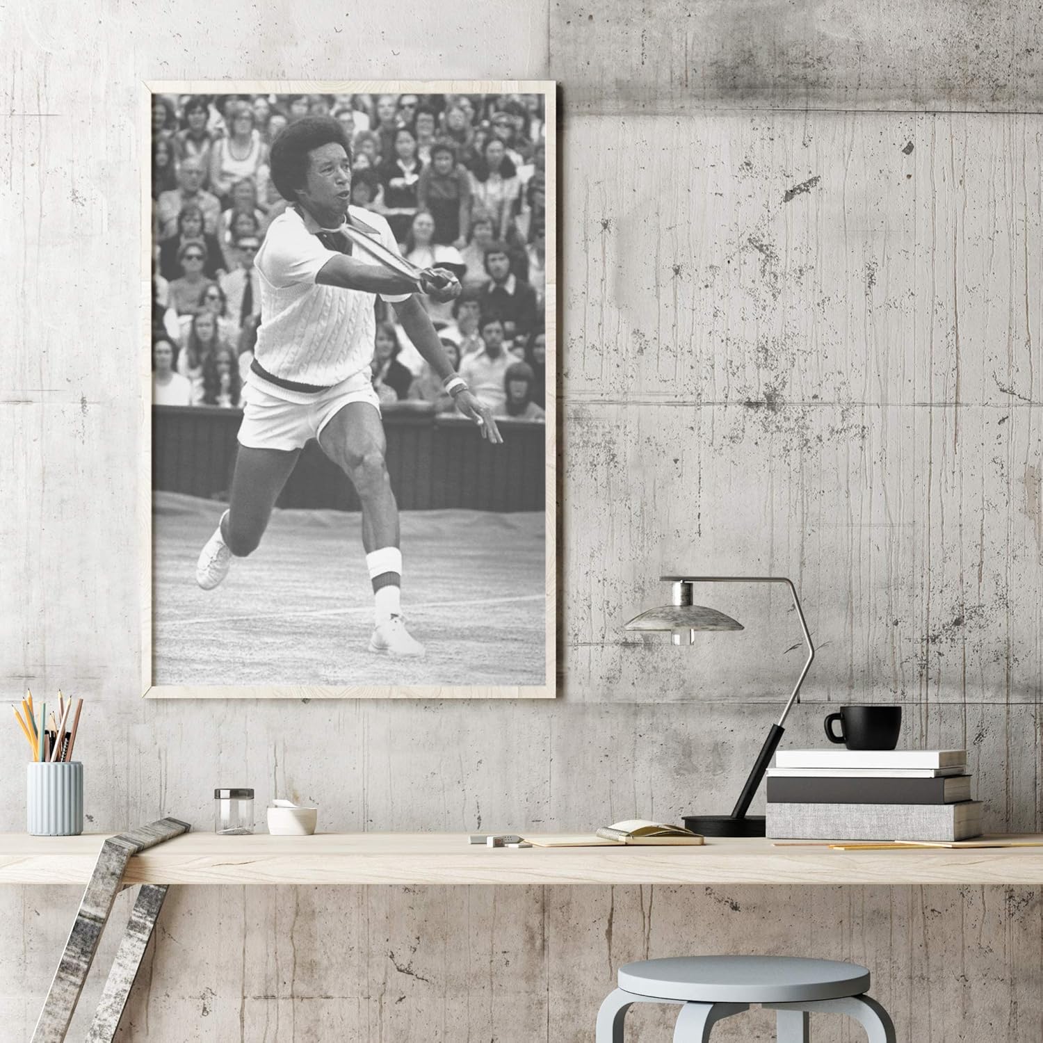 Arthur Ashe (1943-1993). /Namerican Tennis Player. Photographed During His Match Against Jimmy Connors In The Men'S Singles Final At Wimbledon, Won By Ashe In Four Sets, 5 July 1975. is a licensed reproduction that was printed on Premium Heavy Stock Paper which captures all of the vivid colors and details of the original. The overall paper size is 18.00 x 24.00 inches. This print is ready for hanging or framing and would make a great addition to your home or office decor.