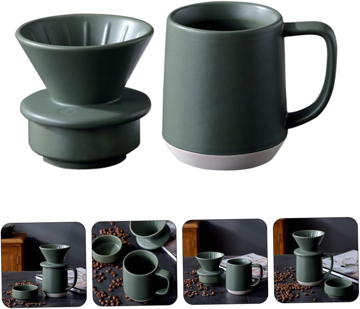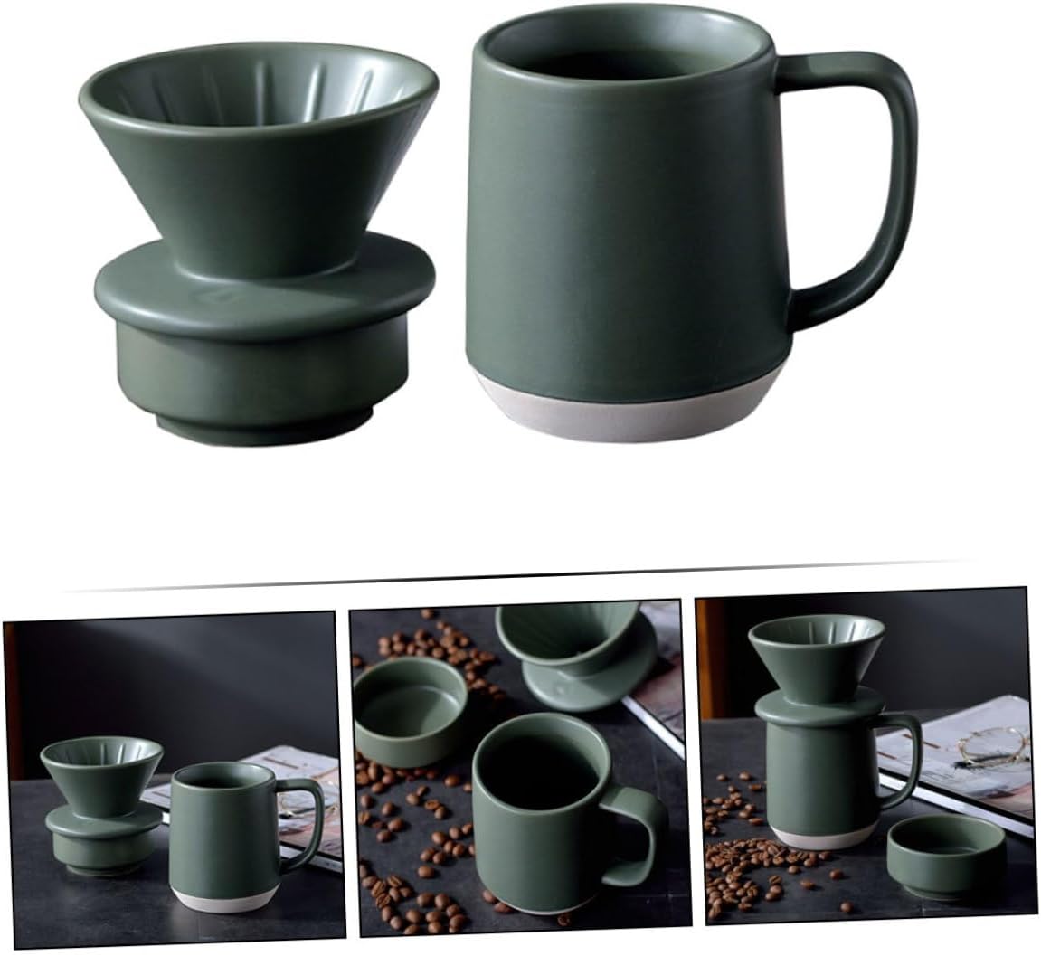 Package Include 1 x Filter cup 1 x coffee cup 1 x drip dish Characteristics - Size: 11.50X10.00X16.50cm/4.52X3.93X6.48inch Manual Coffee Filter Cup. - Color: Green Coffee Mug. - Material: Ceramic Ceramic Coffee Filter. - Small and , it is very convenient to use and store, and it will not take up too much space Ceramic Coffee Filter Cup. - workmanship and materials ensure a and details Coffee Filter Cup. - This filter cup can better extract the coffee and make the coffee taste better Coffee Strainer Cup. - The round mouth of the cup, the inner and outer glazed surface, can be used with confidence Coffee Cup with Handle. - Line design prevents excessive extraction and also avoids insufficient extraction Coffee Cup.Goods DescriptionHand Brewed Coffee Cup Suitable for homes, coffee shops, offices and other places.Milk Filter Cup This coffee filter cup with coffee mug, can make your hand brewed coffee more mellow.Ceramic Cup Made of advanced ceramic materials, workmanship,