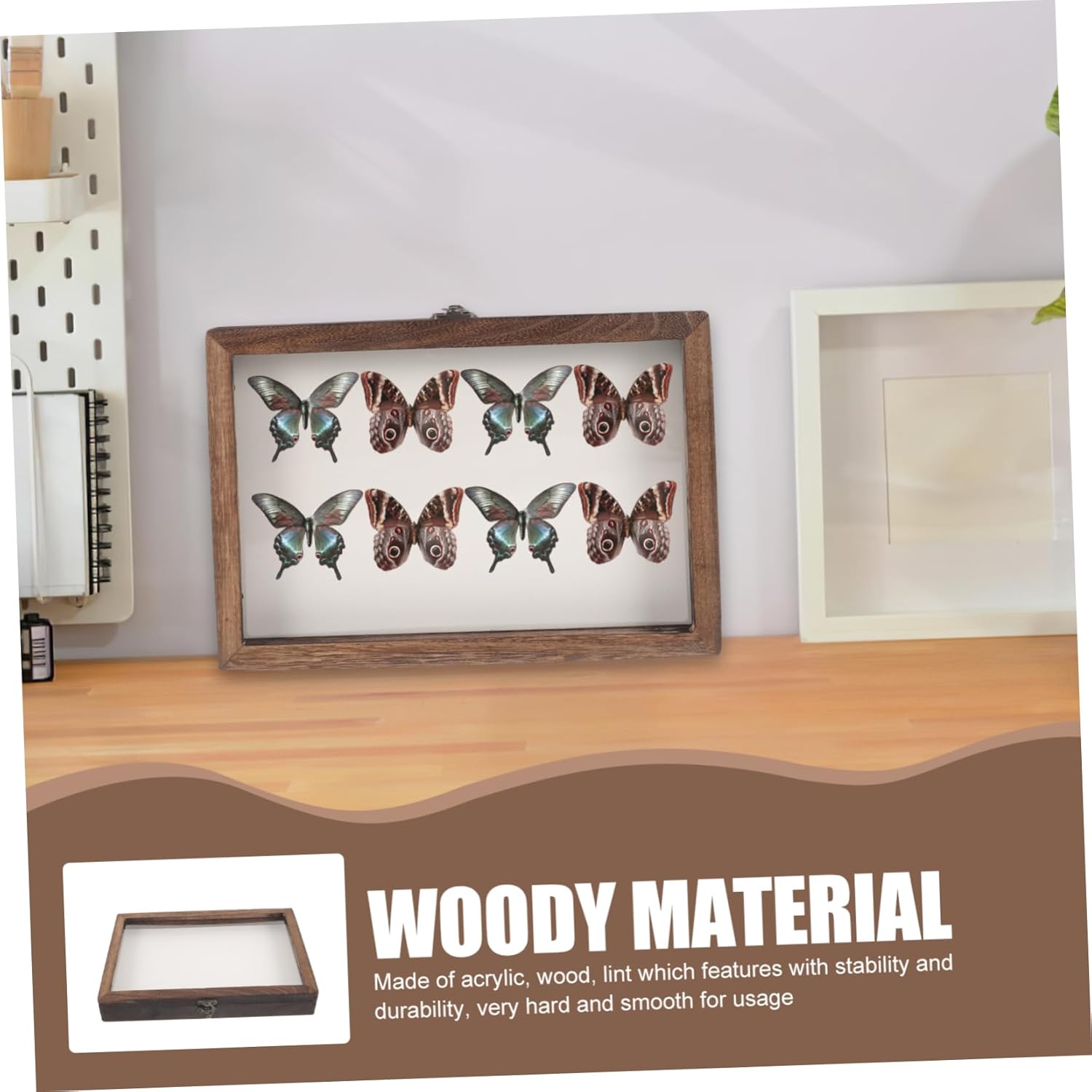 Package List 1 x Wooden Display Case 1 x Pin Cushion Features -Note:No butterfly contains. Lock Style display cases for . -Material:Wooden, lint, acrylic collector -Color:Coffee -Size: 31.00X22.00X4.50cm/12.18X8.65X1.77in decor - When filled some plant or specimens inside box, also can be as a delicate wall adornment or wall decor beetle specimens. - Elegant box with vintage charm, perfect for showcasing butterfly specimens. Very useful in daily life . - Wall-mounted design for space-saving storage and eye-catching display, stylish, suitable decor beetle specimen. - Owning the and break ability, this specimen box is practical, with excellent texture display case. - Multi-functional storage box for displaying dried flowers, jewelry, and other small items. Can be widely used beetles specimens.Goods Information collection display case Elegant box with vintage charm, perfect for showcasing butterfly specimens.butterfly specimen Use a special way to show this case to your friends and much more.display case This specimen box is made of wood, cloth and acrylic material for practical use. display case The transparent top design helps you identify what specimens you store
