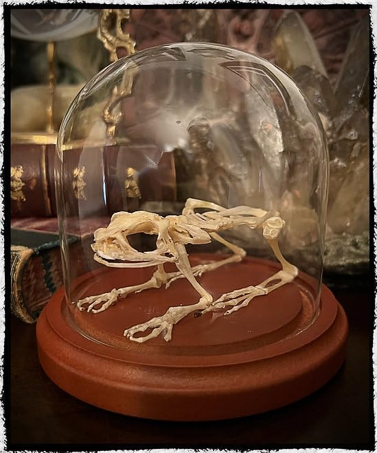 This sale is for one articulated genuine "Limnonectes macrodon" frog skeleton. The skeleton is permanently mounted in a glass dome, measuring approximately 4" x 4". Frogs and toads are a powerful symbols of transformation, as they grow from tadpoles to adults.They have associations with fertility, magic and traditional Witchcraft. Round about the cauldron go; In the poison'd entrails throw. Toad that under cold stone Days and nights has thirty-one Swelt'red venom sleeping got Be thou first i' th' charmed pot. -Macbeth, Act 4, Scene I Contact with any questions )0(