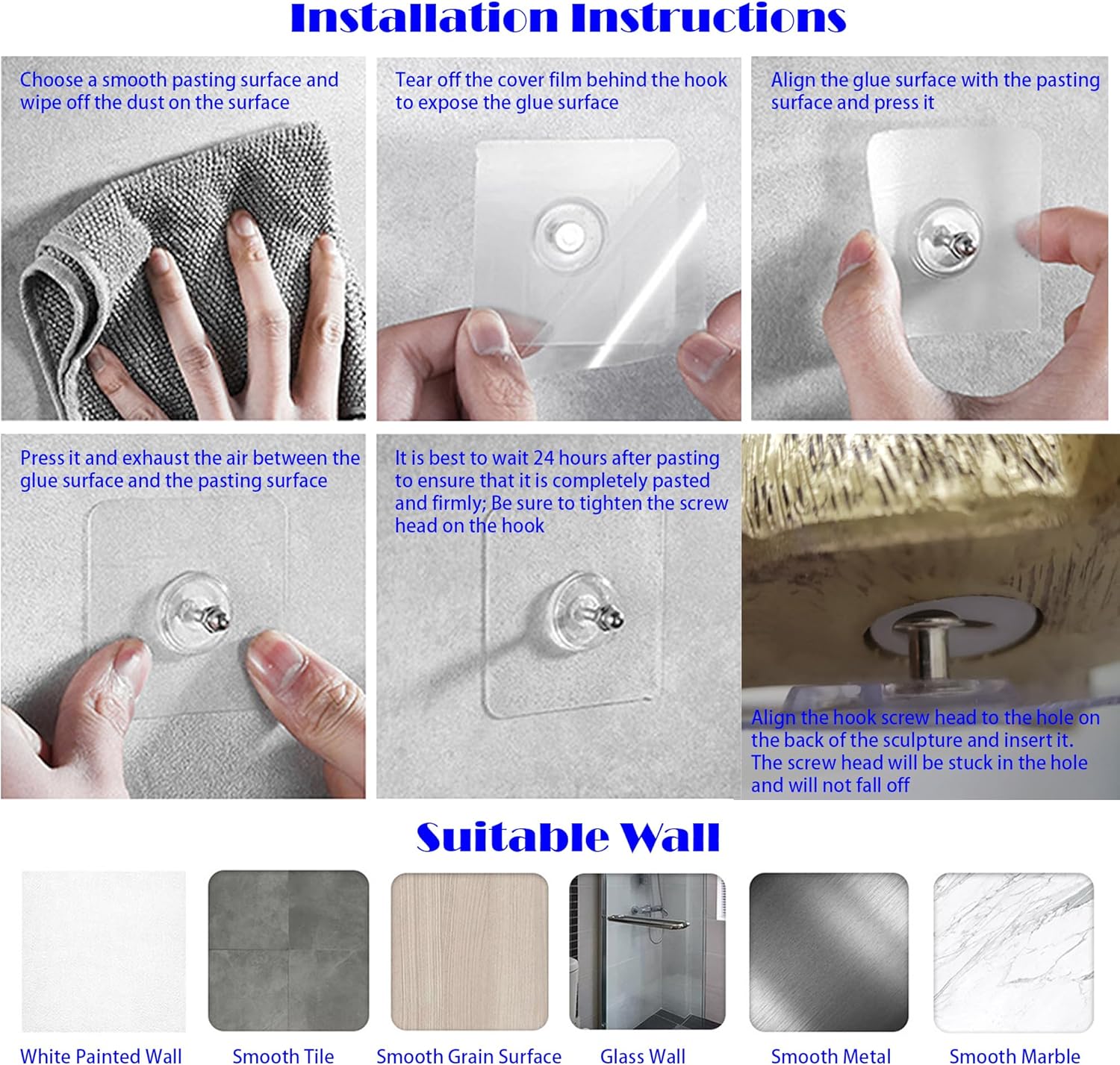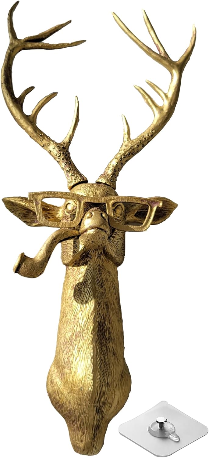 Product Name: Brass Animal Heads Wall Decor Material: Environmentally friendly resinColor: Brass, CopperWidely applicable with individuality:Home walls or doors for living room, bedroom, kitchen, bathroom, garden decoration;Desktop decoration;bar, restaurant, special indoor and outdoor business, etc.Product Size and Net Weight: Deer head: 5.3x2.4x14.8in 10.3ozBear head: 5.3x2.8x6.3in 9.7ozRabbit head: 5.9x2.0x9.5in 5.0ozFox head: 4.1x2.8x5.9in 7.2ozRat head: 3.5x2.0x3.9in 3.9oz5pcs: 9.5x9.5x7.1in 3.1lbNail-Free Hook: 2.2x2.2in 0.2ozPacking List: 1x Decorative Resin Animal Head Wall Mount1x Small Bottle of Glue for attaching the ears only (deer and rabbit)1x Nail-Free Hook (Strongly adhered to smooth surfaces, not suitable for uneven walls, dusty walls, wallpaper)Tips:Please note that there will be slight errors in manual measurement and the actual product may not be exactly the same color as the picture due to shooting light.The products are packed in shockproof packaging and carefully inspected before being sent directly to customers by the seller to ensure the quality of the products is intact.How to use nail-free hooks to install resin sculptures:1. Choose a smooth pasting surface and wipe off the dust on the surface 【Non-smooth surfaces, such as uneven walls, dusty walls, wallpaper, etc. are not suitable for nail-free hooks】2. Tear off the cover film behind the hook to expose the glue surface;3. Align the glue surface with the pasting surface and press it, and exhaust the air between the glue surface and the pasting surface;4. It is best to wait 24 hours after pasting to ensure that it is completely pasted and firmly;5. Be sure to tighten the screw head on the hook;6. Align the hook screw head to the hole on the back of the sculpture and insert it. The screw head will be stuck in the hole and will not fall off.Please install according to the above instructions. Improper use of nail-free hooks will affect the pasting and load-bearing effects. If you are not sure about the pasting effect of the pasting surface, you can use iron nails or other methods to fix the installation.