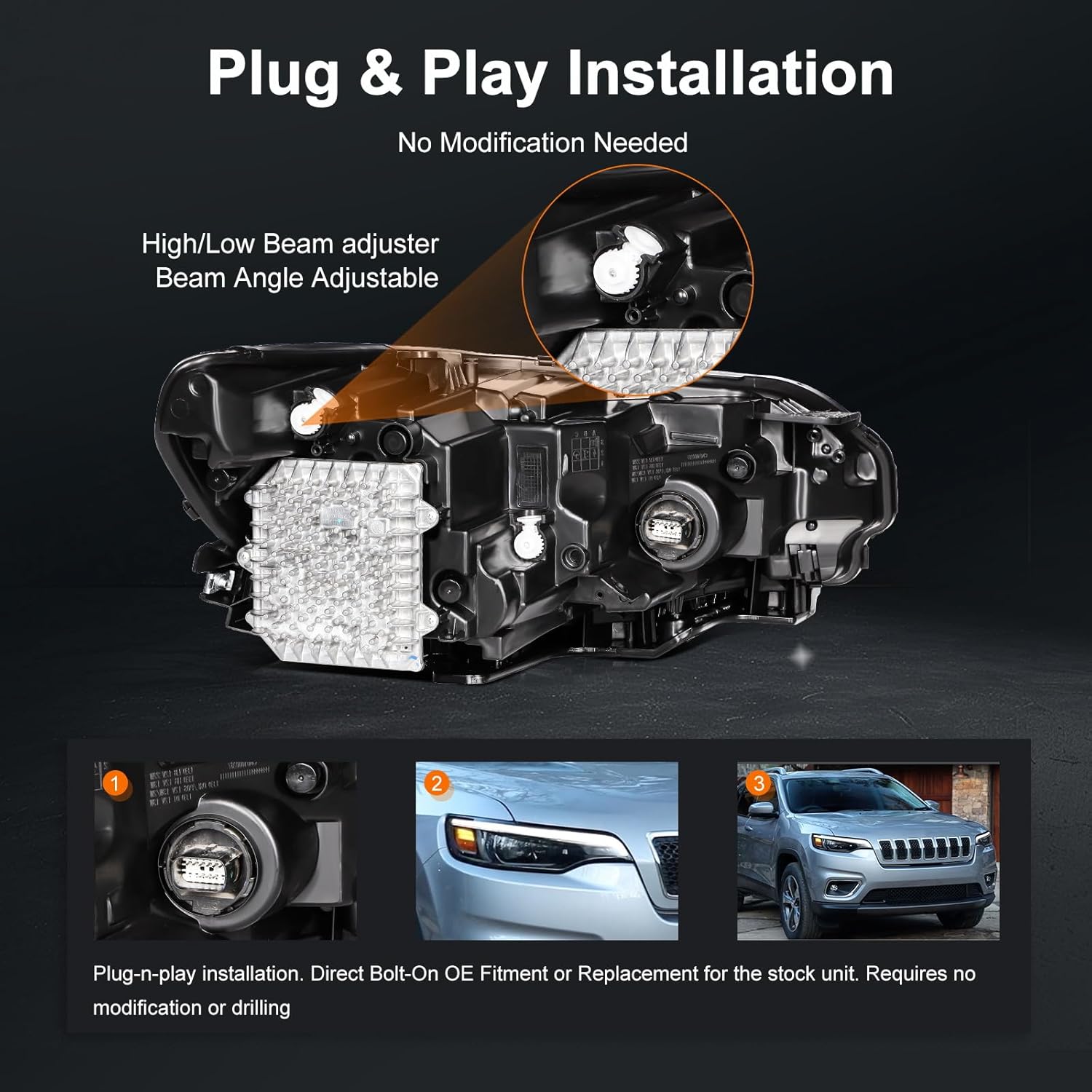 | Included Components | Jeep Driver Side Headlight |