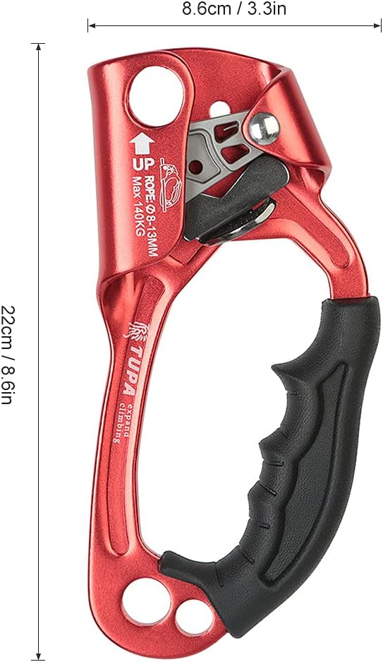 Aluminum magnesium alloy constructed hand ascender provides firm grips in compact shape, widely used as a protective assistant during working, climbing, caving and so on outdoor sports. Feature: Aluminum magnesium alloy with reliable strength. Max bearing capacity: 140kg / 308lb. Fits single ropes: 8-13mm. Steel thorns design make it firm for grip but not damage the rope. Holes in the upper and lower part for carabiner or other gear to connect. Widely used as a protective assistant during aloft working, climbing, caving and so on sports. Specification: Material: Aluminum Magnesium alloy Right hand: Blue / Orange / Black / Red (optional) Left hand: Red / Orange (optional) Bearing capacity: 140kg / 308lb For rope: 8-13mm Size: 22 * 8.6cm / 8.6 * 3.3in Weight: 239g / 8.4oz Package weight: 248g / 8.7oz Package List: 1 * Hand Ascender