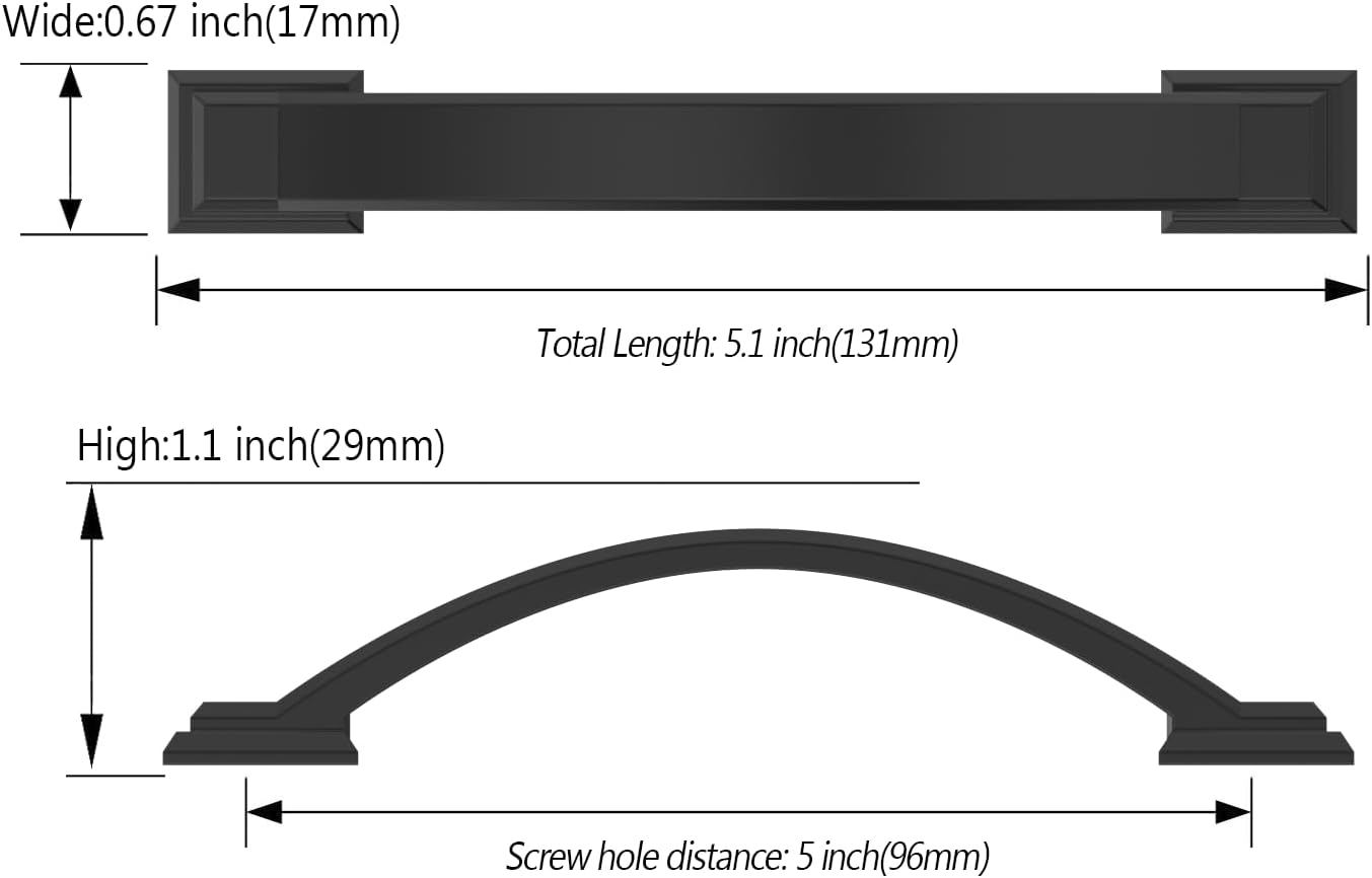 Asidrama 10 Pack 5 Inch(128mm) Matte Black Kitchen Cabinet Handles, Cabinet Pulls Kitchen Cabinet Hardware for Cupboard Drawer Pulls