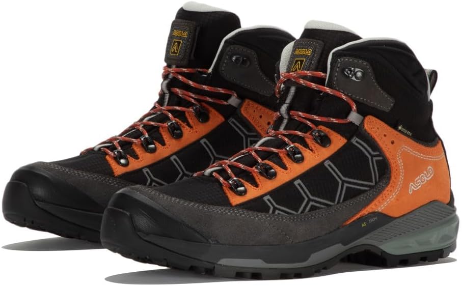 Water-resistant suede and high tenacity nylon upper offers protection and comfort while the Gore-Tex Extended Comfort Footwear lining guarantees waterproofness and breathability. 3D thermo-shaped collar for the best fit and comfort. Dual density Eva midsole: first density is harder for giving support and stability while the second is softer and offer comfort and cushioning. The Asolo/Vibram outsole has a self cleaning design and it uses the MegaGrip compound for amazing grip, traction and performance on wet and dried terrains. To complete the model a tpu cap for protection and the hardware lacing system for a fast and precise lace up.