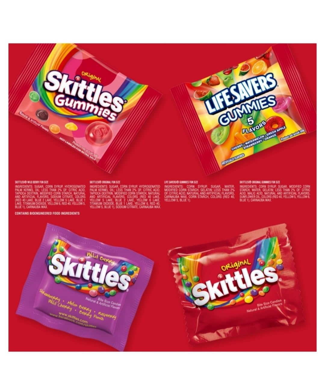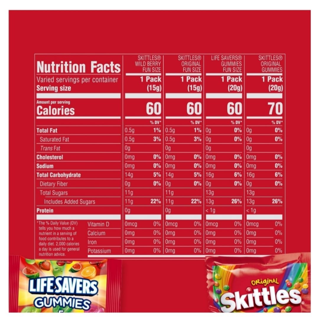 | Flavor | SKITTLES Original, SKITTLES Wild Berry, SKITTLES Gummies & LIFE SAVERS Gummies candy |