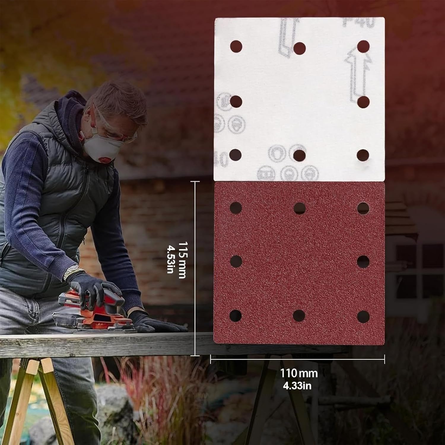 Featuring 120 pieces of pads, this sandpaper set is designed for a wide range of uses, including woodworking, drywall, automotive, furniture refinishing, metal, headlight restoration, crafts, decks, concrete, model making, floors, cabinets, boats, jewelry, and industrial purposes. Each pad measures 4.3x4.5in, providing adaptability for multiple appearances and projects, ensuring efficient material removal and smooth finishes. Product material: Aluminum oxide particles and high-strength resin Product size: about 110 x 115mm/4.3x4.5in (40/60/80/100/120/150/180/240/320/400/600/800 grit) Product weight: 115 g Note: Due to different lighting and screen settings, the item colour may be slightly different from the picture. Due to different manual measurements, please allow a 1-2 cm difference in size. Product list: Sandpaper assortment x 120 pieces