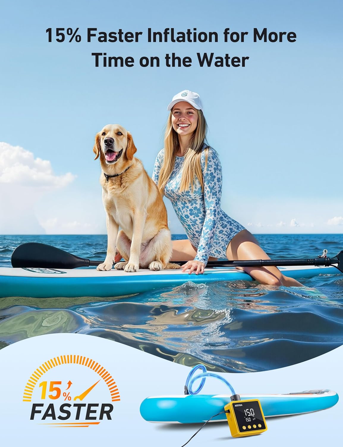 AstroAI Paddle Board Pump Electric Portable, SUP Air Pump, SUP Pump for Paddleboard, 20PSI Air Compressor with Auto-Off, Deflation Function and 12V DC Car Connector for Paddle Board, Kayaks and Boats Valentine's Day Gift for him