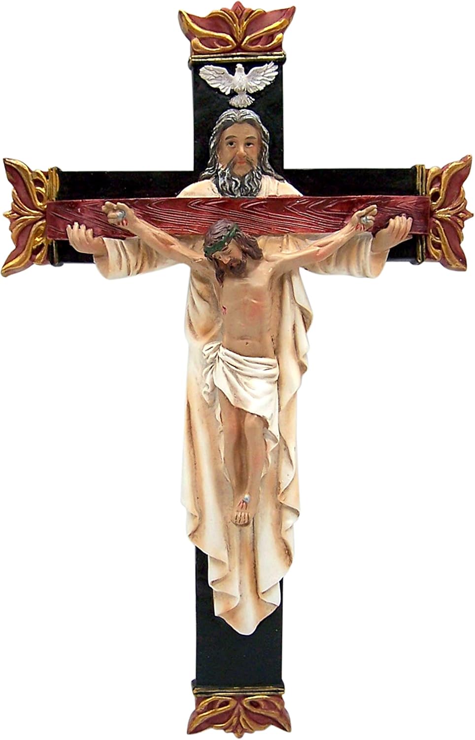 Wall Crucifix Made of Resin, Measures 12 Inches Tall Includes Hanger on Back for Easy Wall Mounting Good Size to Hang in Your Home, Parish or Classroom Feature Father, Son and Holy Spirit Perfect Gift for Any Sacrament Celebration