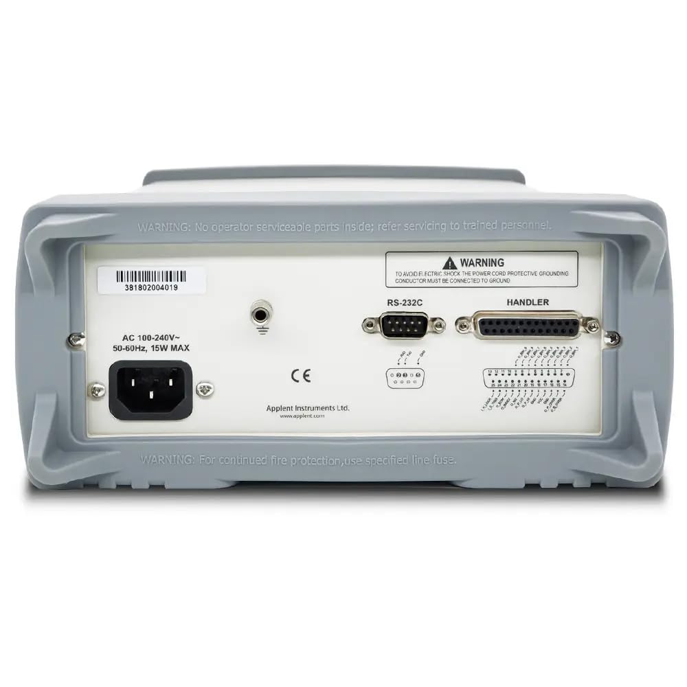 The AT3816B is an advanced benchtop LCR meter ideal for precise measurement and sorting of passive components. It covers a wide 10Hz to 200kHz test frequency range with high basic accuracy of 0.1%. Inductance, capacitance, resistance and dissipation factor can be reliably measured. Dual large color LCD displays allow clear viewing of primary and secondary parameters. Automatic, manual and nominal range selection provides flexibility. The built-in comparator and handler interface enables automatic sorting when connected to a PLC. SCPI and Modbus remote interfaces allow data collection and analysis. Up to 10 test frequencies can be programmed for customized testing. DC bias up to ±2.5V characterizes polarized components. With its wide frequency range, high accuracy, dual display, auto sorting capability, and DC bias, the AT3816B is perfect for production testing, quality control, and lab use. Specifications: - 10Hz to 200kHz frequency range - 0.1% basic accuracy - Measures L, C, R, D - Dual color LCD display - Auto, manual, nominal ranging - Comparator & handler interface - SCPI & Modbus interfaces