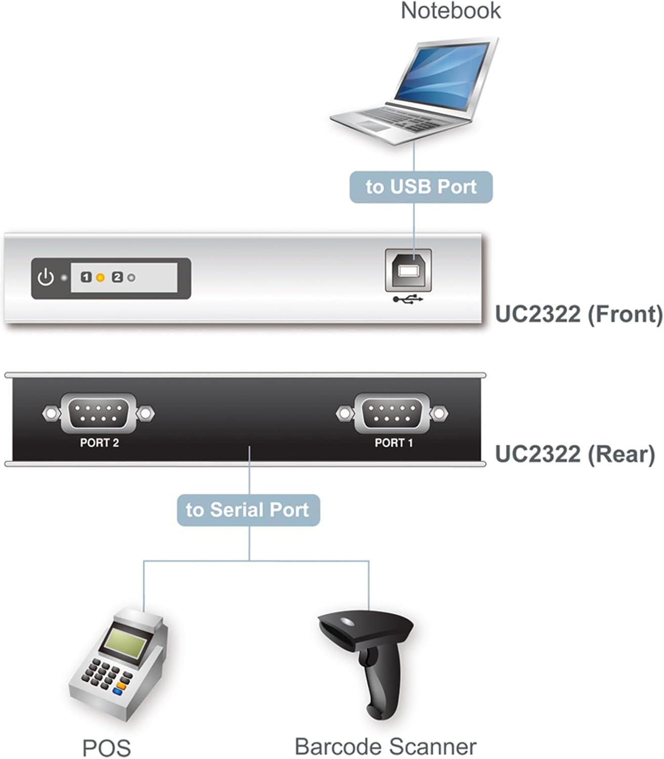 The ATEN USB-to-serial RS-232 hub provides an external plug-and-play RS-232 serial connection for computers, notebooks, laptops, and handheld computing devices that support the USB specification.