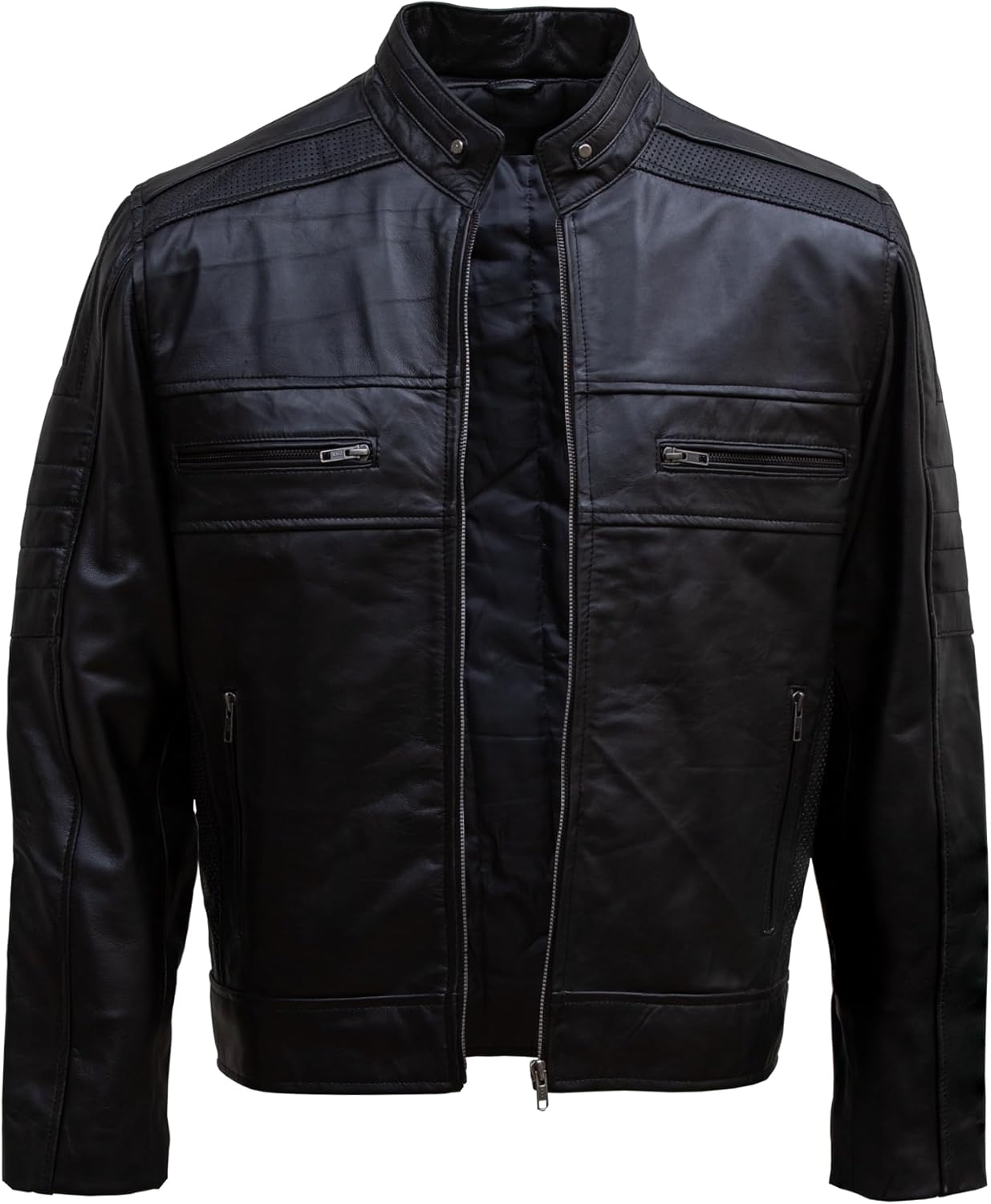 ATIKI Men’s Genuine Leather Jacket for men is designed for those who appreciate quality, comfort, and timeless style. Made from real leather, it offers a luxurious feel and unmatched durability. The slim-fit design ensures a tailored look, while the quilted shoulder detailing adds a touch of modern sophistication to the classic biker style. Whether you’re heading out for a casual gathering or want to add an edge to your everyday look, this jacket is the perfect choice. With a stand-up collar and multiple zipper pockets, it combines style with practicality. The full-zip closure provides a sleek, streamlined appearance, while the zipper cuffs add extra character. Lightweight yet warm, this premium mens leather jacket is ideal for all seasons, offering just the right balance of comfort and style. Versatile and easy to pair, it complements any outfit. Wear it with jeans and boots for a laid-back, rugged look or layer it over a button-down shirt for a more polished appearance. Whether you’re a fan of vintage biker jackets or just need a reliable, stylish leather jacket for men, this piece will quickly become your go-to favorite.