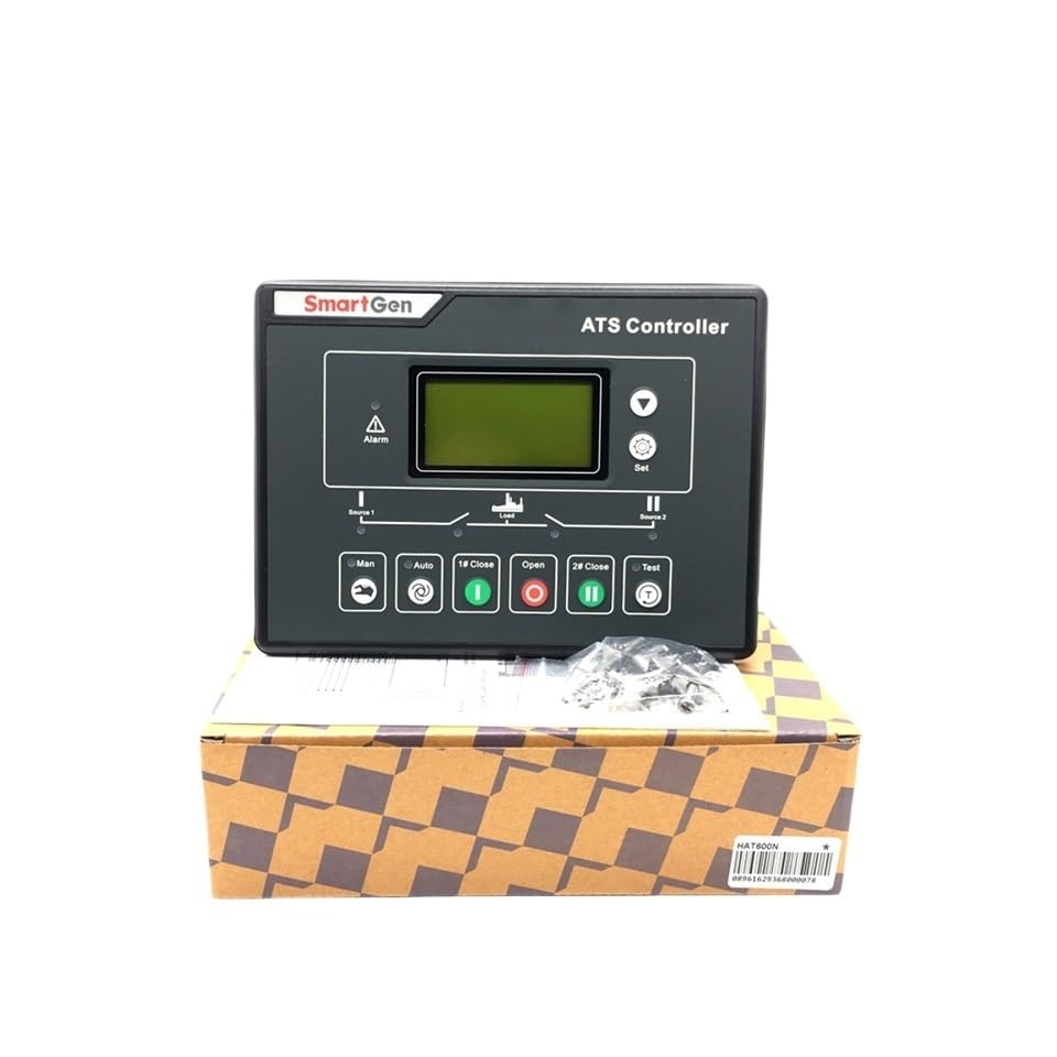 Electronic Engine ControlATS HAT600N Controller Intelligent Dual Supply Generator Control Module For Diesel Alternator Parts1. OVERVIEWHAT600N series ATS controller is an intelligent dual-supply module with programmable function, automatic measurement, display, and digital communication. It combines digitalization, intelligence and network together. Measurement and control process are automated, which greatly reduces hand operation mistakes. It is an ideal option for ATS.HAT600N series ATS controller is made of microprocessor as its core, which can accurately detect. 2-way-3-phase voltage and also make accurate judgment for abnormal voltage (over voltage, under voltage, loss of phase, over frequency, under frequency) and output passive control signal. This controller has full consideration in various applications of ATS (automatic transfer system), which canbe directly used for Intelligent ATS, Contactor ATS, Circuit Break ATS etc. It has compact structure, advanced circuits, simple wiring and high reliability, can be widely used in electric power, telecommunications, petroleum, coal, metallurgy, railways, municipal administration, intelligent building, electrical devices, automatic control and testing system etc.2. PERFORMANCE AND CHARACTERISTICS1) System type can be set to: Mains (1#) & Mains 2# Mains 1#) & Generator 2# Generator 1#) &Mains 2# Generator (1#) & Generator 2#2 Backlit 128x64 , optional Chinese and English display, push-button operation.3) Collect and display 2-way 3 phase Voltage and Frequency:1# 2#Line-Line voltage (Uab, Ubc, Uca) Line-Line voltage (Uab, Ubc, Uca)Phase voltage (Ua, Ub, Uc) Phase voltage (Ua, Ub, Uc)Frequency (F1) Frequency (F2)4) Collect and display load active power, apparent power, power factor and 3 phase current.5) Over current alarm function.6) Over/under voltage, loss of phase, reverse phase sequence, over/under frequency protection.7) Automatic/Manual mode transfer; In manual mode, switch can be forced to close or open;8) All parameters can be set on site. Two level passwords ensure authorized staff operation only.9) During genset testing ATS controller can be set to either in On-load or Off-load mode.10) ATS Controller has function of automatic re-closing.11) Closing output signal can be set as on intervals or as continuous output.12) Applicable for ATS of one neutral position, two neutral position and change over.13) Applicable for 2 isolated neutral line for Generator and Mains.14) Real-time clock (RTC).15) Event log can record 50 items circularly.16) Timely schedule can be set on monthly or weekly basis and trial can be set as with on- load or off-load.17) Can control two generators to work in a cycle, even the genset running time and crank rest timecan be set.18) Widely range of DC power supply (8V to 35V). Max.80V DC input can be endured in an instant, or besupplied via HWS560 module (input AC 85V~560V, output DC 12V).19) Wide space between connecting terminals of AC input. Max.625V input voltage.20) With standard isolated RS485 communication interface. With "remote controlling, remotemeasuring, remote communication" function by the ModBus communication protocol.21) Can check the current status of controller (including switch digital input, over Voltage, and underVoltage etc.).22) Suitable for various AC systems (3 phase 4-wires, 3-phase 3-wires, single-phase 2-wire, and2-phase 3-wire).23) Modular design, flame-resisting ABS plastic shell, plug-in terminals and embedded installation.Compact structure with easy installation.==========Hign-concerned Chemical : NoneModel Number : HAT600Nis_customized : YesOrigin : Mainland Product Name : Generator Control ModuleKeyword : ATS Control ModuleApplication : For Diesel Genset Intelligent Dual-Supply ModuleQuality Class : Warranty : 1 YearCertificate : ,ISO9001 : YesOperating Voltage : DC(8-35)VCase Dimensions : 209*153*55mmPanel Cutout : 186*141mmWorking Temperature : (-25~+70)