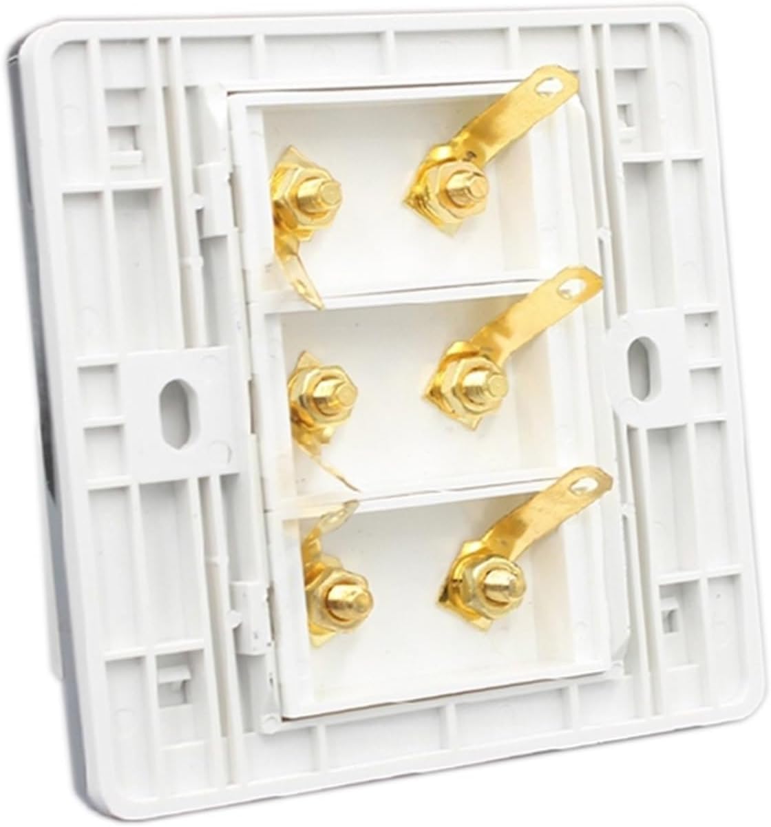 Wall Plates & ConnectorsColor: white + silver edgePorts: Speaker x 6Version: Dimensions: 86x86mm.Panel material: plasticEasy to install and connectScrew hole distance: 60mmInstallation method: wired connectionPanel material: smooth/resistive PCPorts: Speaker x 6Version: Wired connection