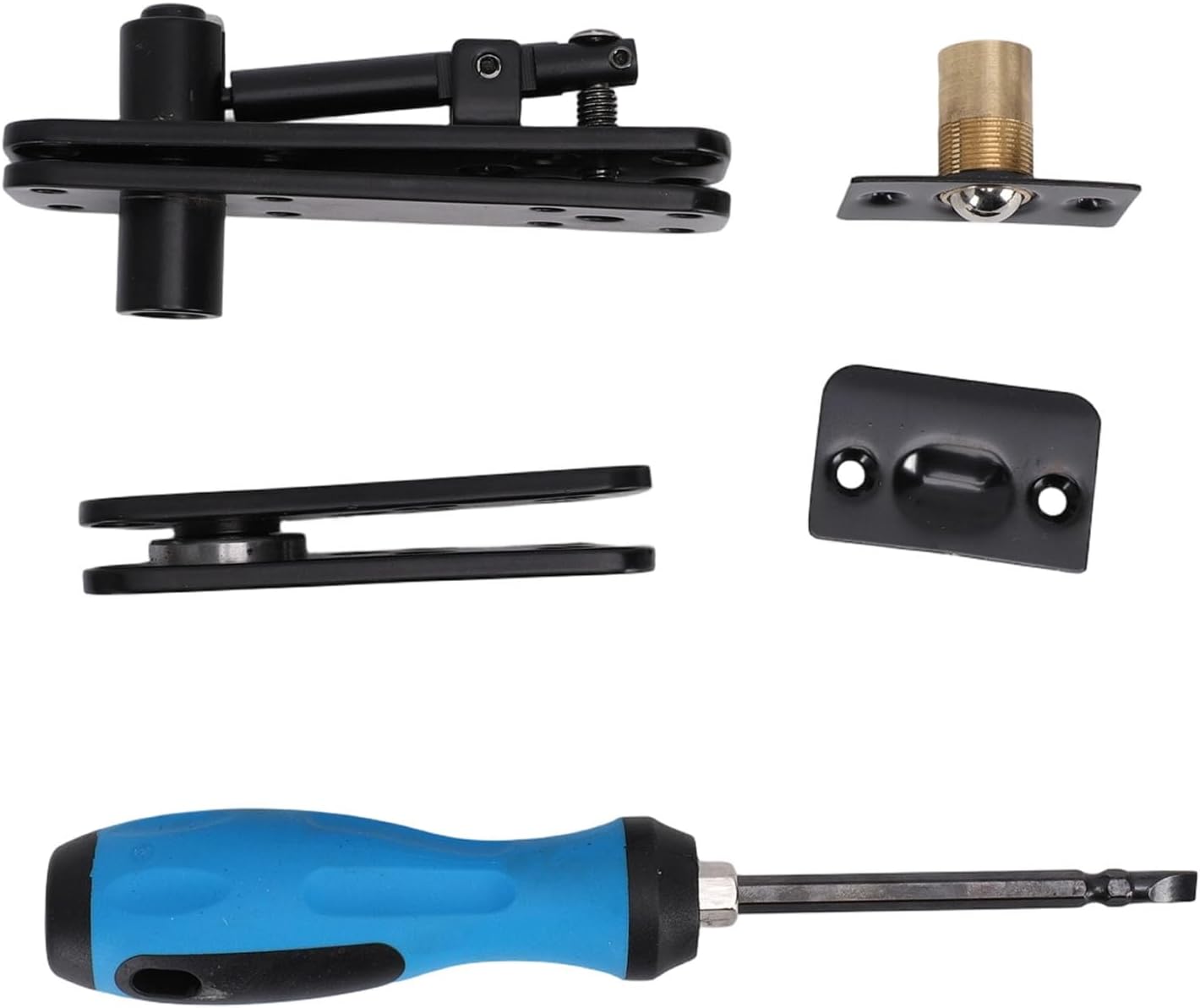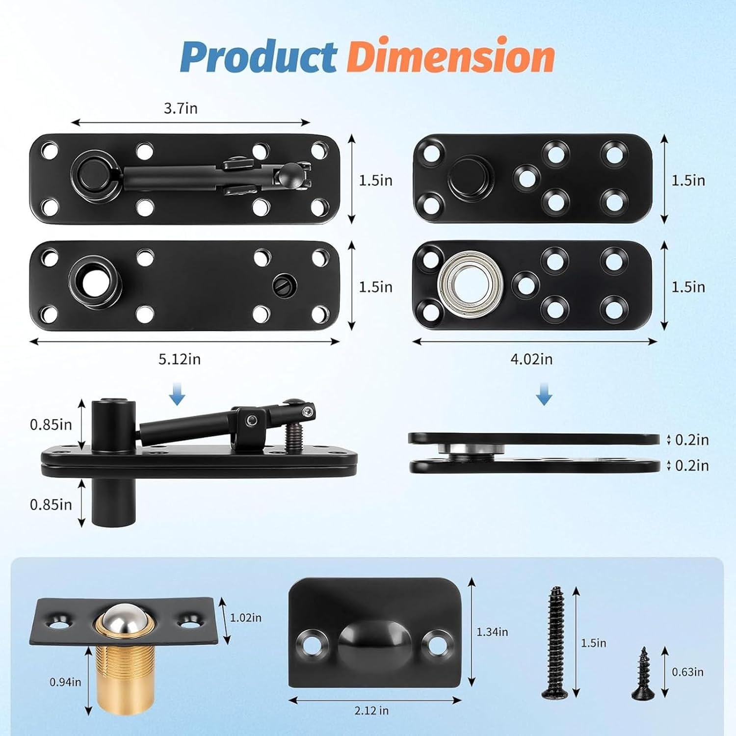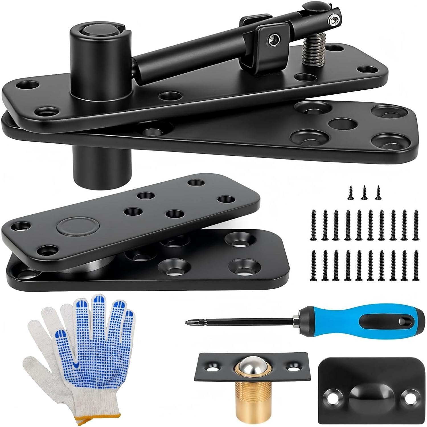 Specification: Item Type: Concealed Pivot Hinge Material: Stainless steel Weight: Approx. 1181.00g / 41.66oz How to Use: Directly use. PackageList: 1 Set of Concealed Pivot Hinge(6 pieces in total) 1 x User Manual 1 Pairs of Gloves 30 x Long Screws 4 x Short Screws 1 x Screw Driver(2 pieces in total)
