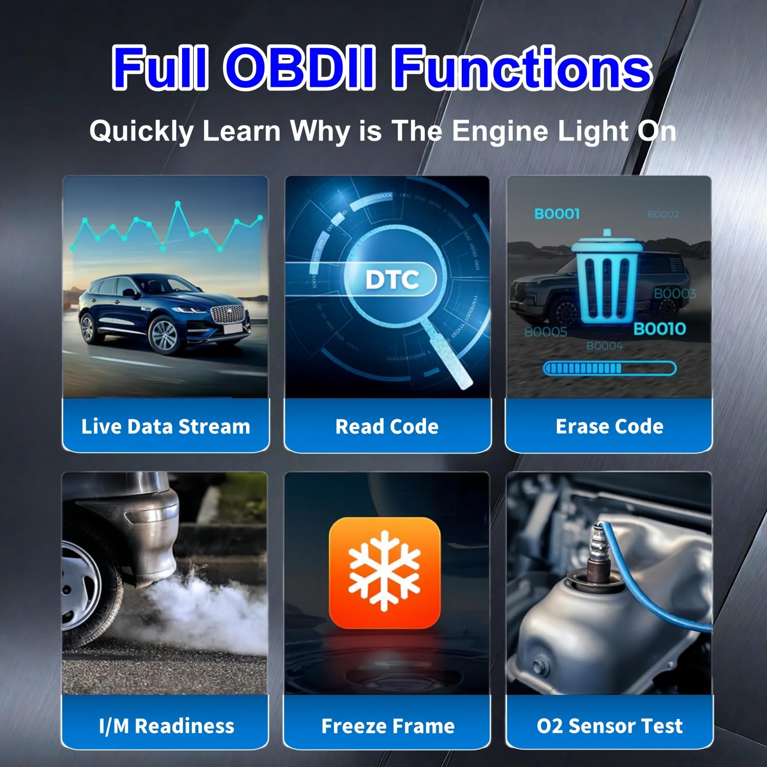 • As an innovative OBDII scan tool, this AP2500 includes but is not limited to OBD2 functions, it also provides users with a wide variety of reset services including O-il Reset/ TPMS Relearn/ BMS Reset/ EV Battery/ WiperReplacement Service.