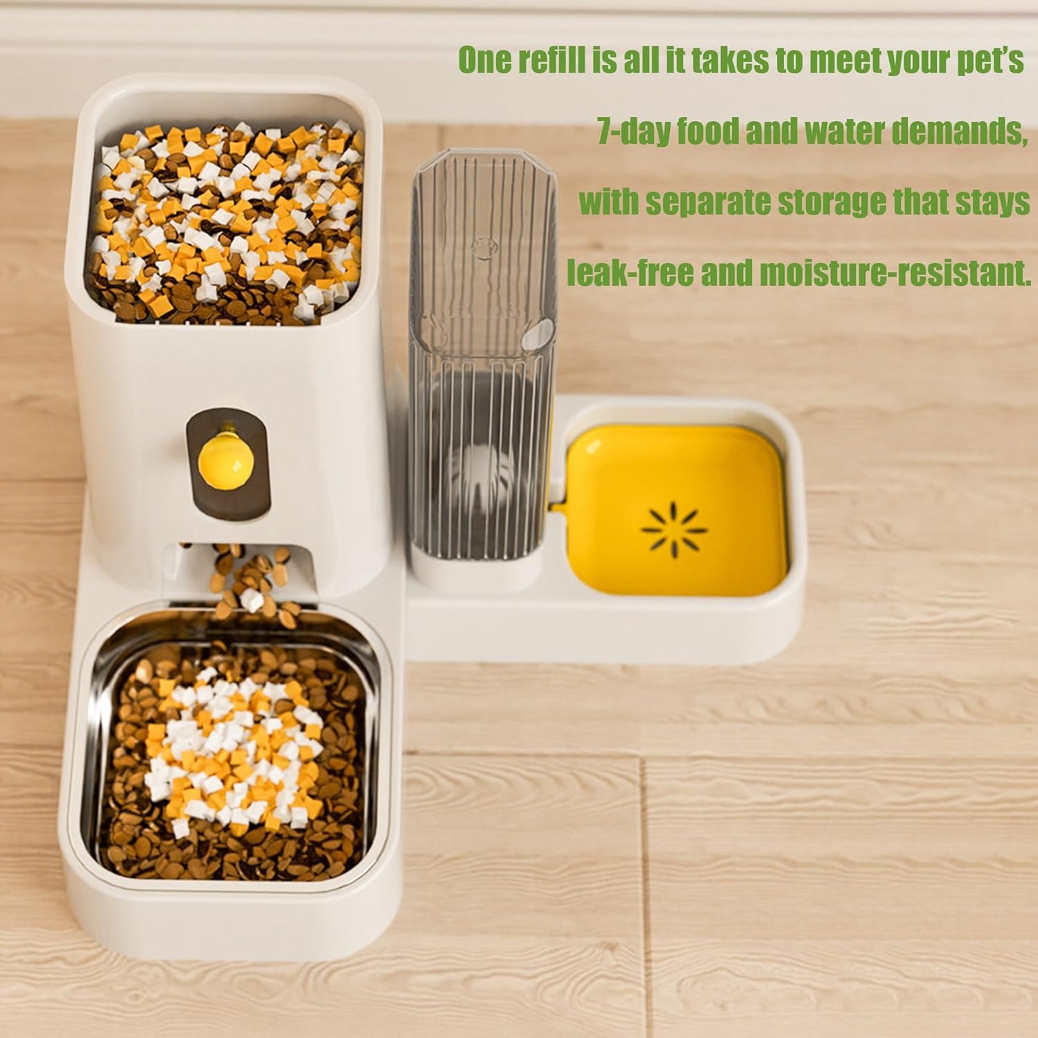 ๐ถ๐ฑCGUOZI Introducing the Automatic Feeder and Waterer 2-in-1 Set for Pets โ your all-in-one solution for convenient pet care. This innovative set combines an Food Bowl Set with Automatic Waterer with a Gravity Pet Water Dispenser , ensuring your dog or dog has constant access to fresh food and water. Specifications: Colour: Blue, White Water capacity: 0.3GALLO (1.1 L) Grain capacity: 0.7GALLO (2.6 L) Material: Food grade PP Plastic + Stainless steel Ltem Dimensions LxWxH๏ผ11.6x13.4x11.8in (294x340x300mm) Features: Spill-proof design ensures the water dispenser never leaks a drop. Ultra-convenient to assemble, fill with water, disassemble and clean. Perfect for home use or as a reliable station for travel due to its portable design. Food-grade plastic & stainless steel construction guarantees safe use for your pets. Compact feeder size fits 1โ2 pet households and meets your travel needs perfectly. Transparent hopper lets you check food levels instantly for hassle-free daily pet care. Portthe widened discharge port ensures even large-particle freeze-dried grains can be handled smoothly. (Note: hand wash recommended, not dishwasher safe)
