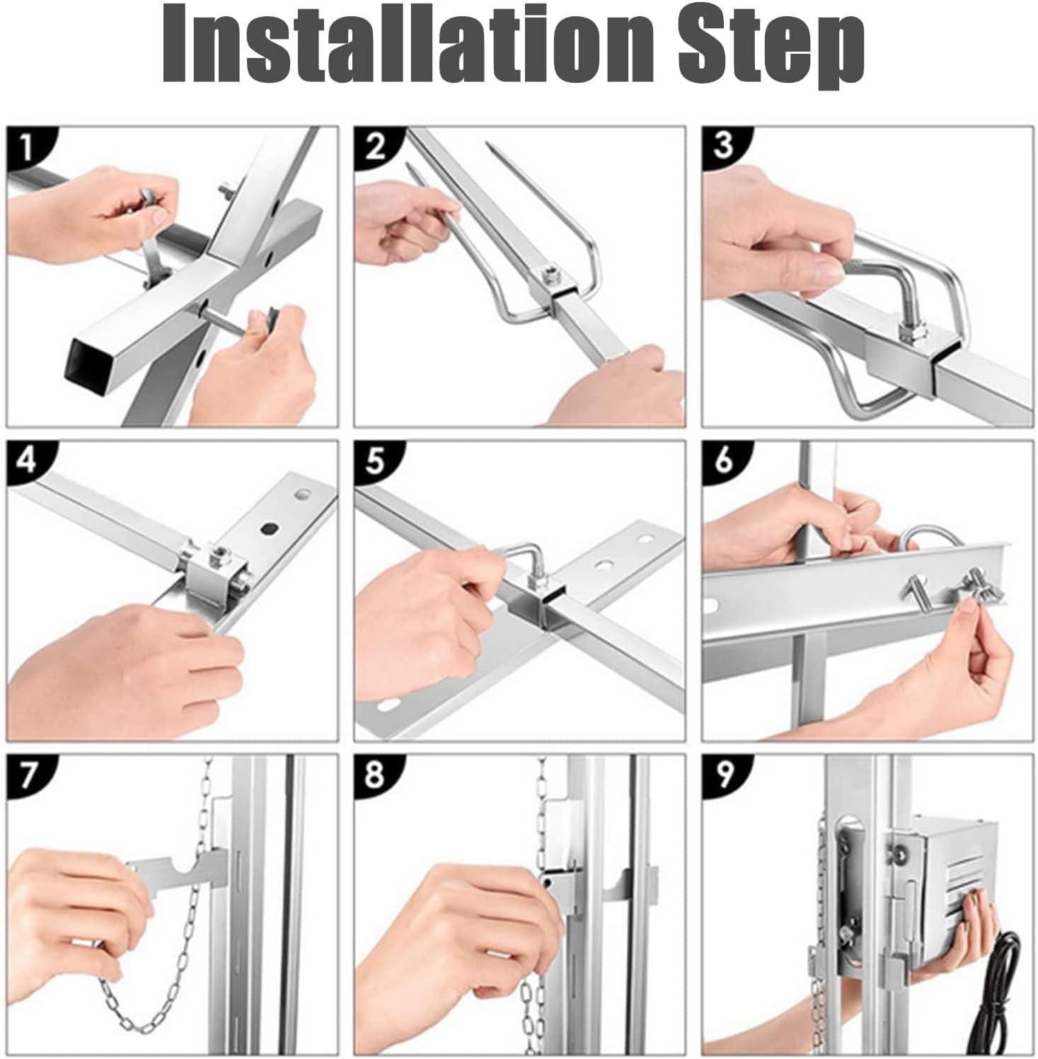Introducing our premium stainless steel rotisserie grill, designed for versatility and performance in various settings, including family gatherings, resorts, barbecue bars, restaurants, and camping trips. With a powerful motor torque ranging from 50 to 70 KGM, this grill can easily handle up to 30 kg of your favorite meats and vegetables, ensuring that your outdoor cooking experience is both efficient and enjoyable. This rotisserie grill operates on a voltage of 220V and features a robust 15W motor, providing consistent 3-5 RPM rotation for even cooking. The durable construction, made entirely from SUS304 stainless steel, guarantees longevity and resistance to rust and corrosion, making it an ideal choice for both indoor and outdoor use. Included in the package are two high-quality baking rods measuring 19*19*58MM, along with two baking forks, each 8*600MM long, perfect for securely holding larger cuts of meat. The grill also comes with two sets of shoulder poles made from SUS304 stainless steel, complete with U-shaped screws and butterfly nuts for easy assembly. For stability during use, we provide two X-type support feet crafted from 201 stainless steel, ensuring that your grill remains steady even on uneven surfaces. Additionally, we have included all necessary installation screws, washers, and tools for quick and hassle-free setup. Please remember to keep the fire away from the grill motor while cooking and avoid any contact with water to protect the motor’s integrity. Enjoy delicious, perfectly cooked meals with our rotisserie grill, and elevate your outdoor cooking game today!