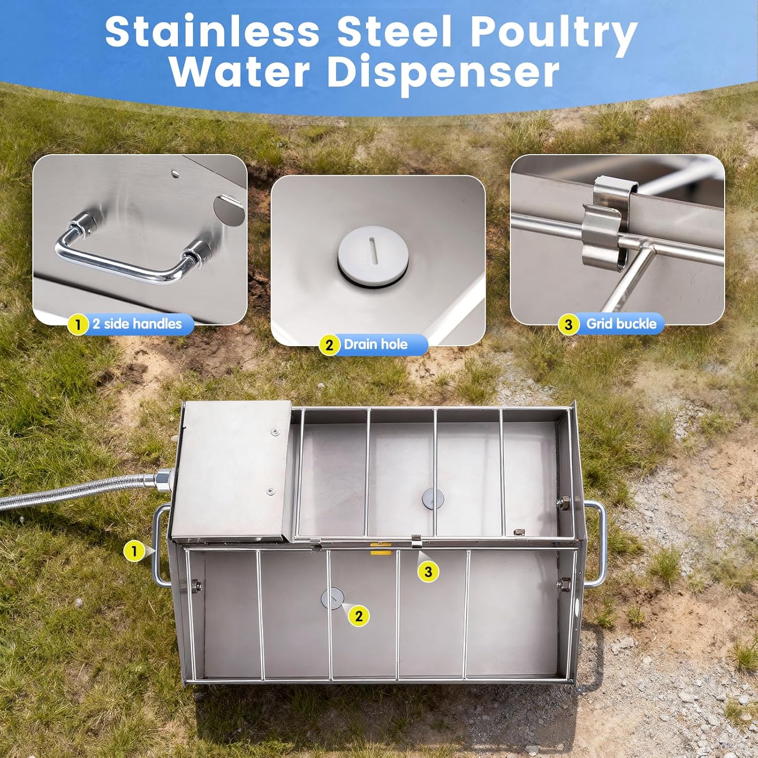 | Included Components | 1* Chickens Waterer and Chicken Feeders 1* Float ball 1* Braided tube 1. Drainage hole 1*Waterproof tape 1 sets connector |