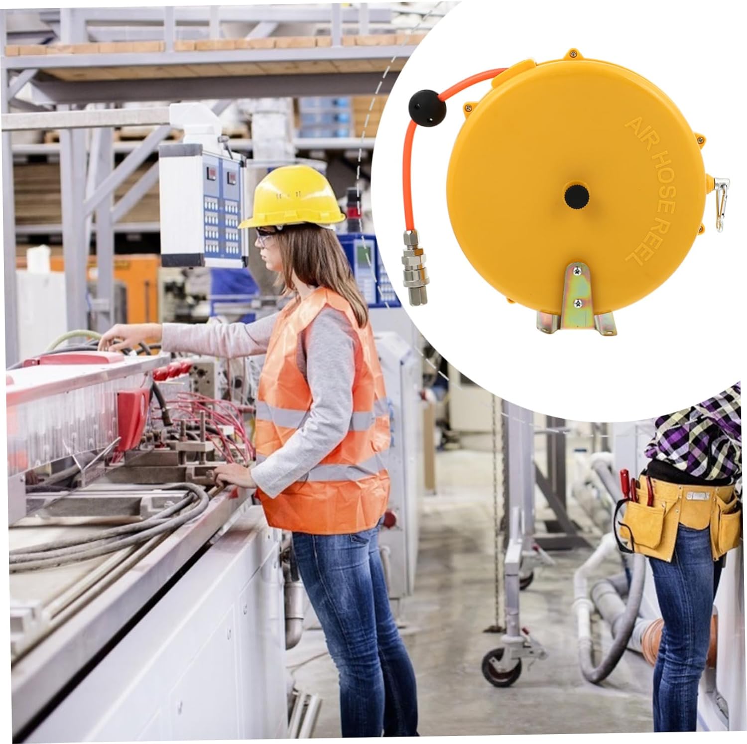 Package List 1 hose reel Characteristics - Color: Yellow air hose reel outdoor. - Size: About 22.00X22.00X7.00cm/ 8.65X8.65X2.75ich air hose reels. - Material: ABS, alloy air hose reel auto. - An external housing protection device prevents cable or water wear and prolongs its service life retractable air hose reels. - Lightweight design, convenient to carry retractable hose reel. - Easy to store, up the hose to make the dirty hose clean and tidy automatic hose reel retractable. - Increased work efficiency and saved retractable hose reels. - Suitable for all hose types, can be used in the house, garden, street, greenhouse air hose reel.Goods Informationretractable reel for air hose Unique design and craftsmanship ensure its popularity and practicality.air compressor hose reel durable automatic air hose reel? If so, take a quick look at this automatic air hose reel.air hose reel Made of materials, durable and