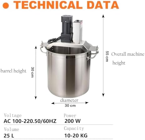 The Automatic Pot Stirrer Mixer is an essential tool for anyone who loves to cook, especially in busy commercial environments like restaurants, dessert shops, and food stalls. This electric portable mortar mixer is perfect for creating smooth jams, sauces, and other sticky mixtures with ease. **Key Features:** 1. **High Efficiency**: Powered by a durable copper core motor, this automatic stirrer offers exceptional power and torque, ensuring thorough mixing every time. 2. **Versatile Heating Compatibility**: Designed to work seamlessly with gas stoves, induction cookers, and electric ceramic stoves, making it a versatile addition to your kitchen. 3. **User-Friendly Operation**: The intuitive one-button control makes it easy for anyone to operate, allowing you to focus on your cooking without the hassle of complicated settings. 4. **Dual Functionality**: This automatic pot stirrer not only mixes but also features a convenient tilt and pour function, making it simple to transfer ingredients without mess. **Product Specifications:** - **Name**: Automatic Food Mixer Machine - **Material**: Stainless Steel - **Heating Source Compatibility**: Works with various heating methods including gas and electric. - **Voltage Options**: 110V/220V - **Motor Power Choices**: Available in 200W, 250W, or 400W - **Size Options**: Outer diameters of 32cm, 42cm, or 52cm, with corresponding inner dimensions. - **Capacity Options**: Holds 20L, 40L, or 80L; suitable for heavy-duty use. - **Weight Capacity**: Can handle approximately 20kg, 40kg, or 80kg of ingredients. **Ideal For**: This mixer is perfect for hotels, food and beverage factories, farms, and restaurants, streamlining your cooking process and enhancing productivity. **Package Includes**: - 1x Automatic Food Mixer - 1x Stainless Steel Pot **Important Note**: This Automatic Stirrer Pot is designed for stirring only and does not have a heating function. It must be used with your own heating equipment for best results....