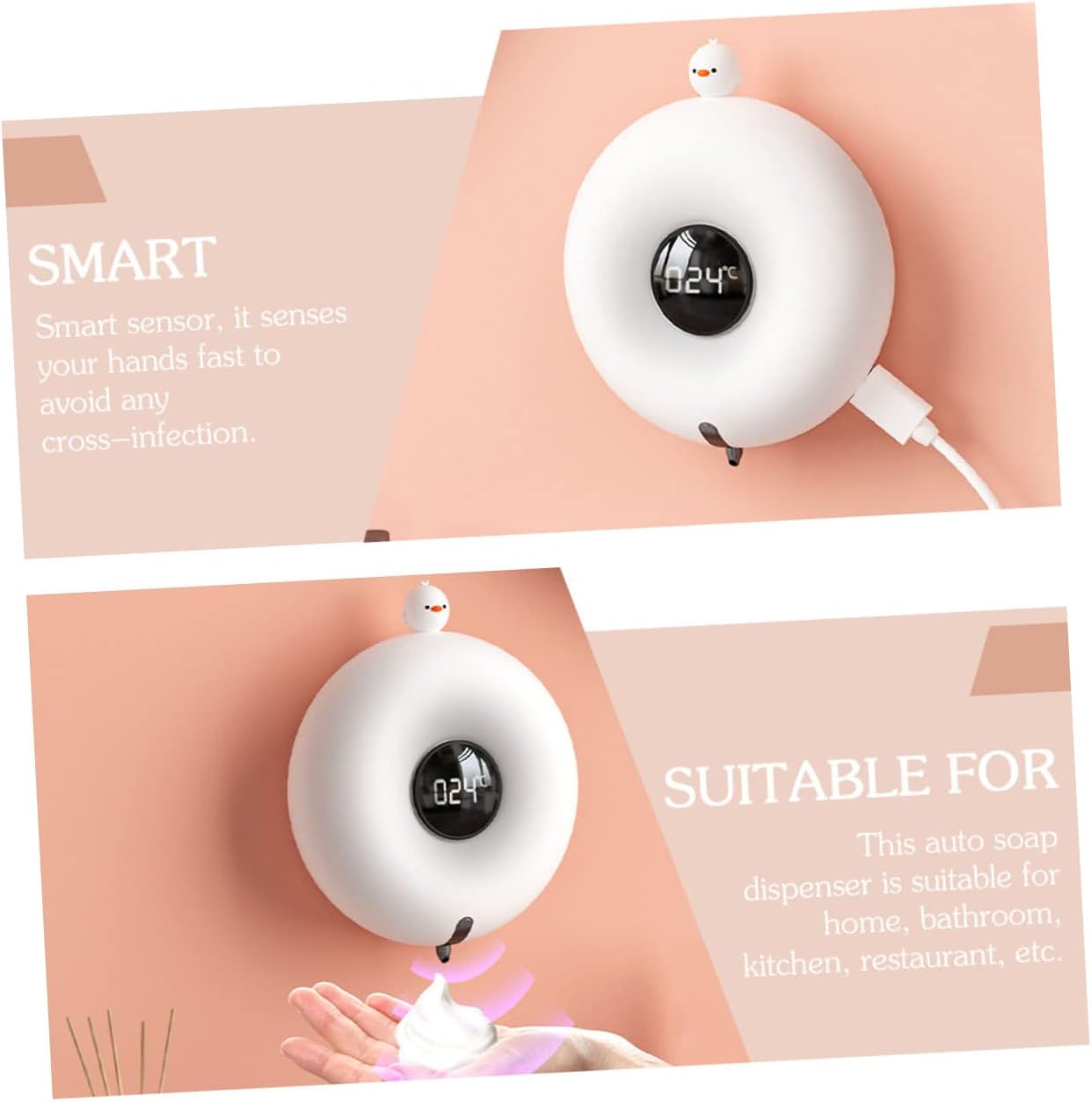 Package Include 1 x Soap Dispenser 1 x USB Cable Characteristics -Net capacity: 300ML cartoon soap machine -Color: White touchless soap dispenser -Size: 13.50X13.50X5.90cm/5.31X5.31X2.32in automatic soap dispenser -Note: battery is included touchless soap container. -Battery capacity: 1200mAh dispenser -Power: 3W container -Charging time: about 3 hours bathroom soap dispenser -Material: plastic -Input: 5V=0.6A - Suitable for various viscous liquids, such as , hand , shampoos, etc soap dispenser wall mount. - Made of , it is very and , excellent and bathroom accessories. - Fully automatic operation, easy to use. Reusable, light and easy to carry soap dispenser. Specification shower soap dispenser - Suitable and wonderful for bathrooms, kitchens, offices, schools, hotels, restaurants wall soap dispenser. - The wall-mounted touch- foaming dispenser is easy to use, simple and intelligent for you kitchen stuff.Goods Descriptiondispenser Touchless design, can sense foams without touching.soap dispenser Better health and safety.kitchen stuff This item is an automatic soap dispenser for , manufactured with , so that it can serve you for many years.touchless soap container It is for restroom, bathroom or kitchen use