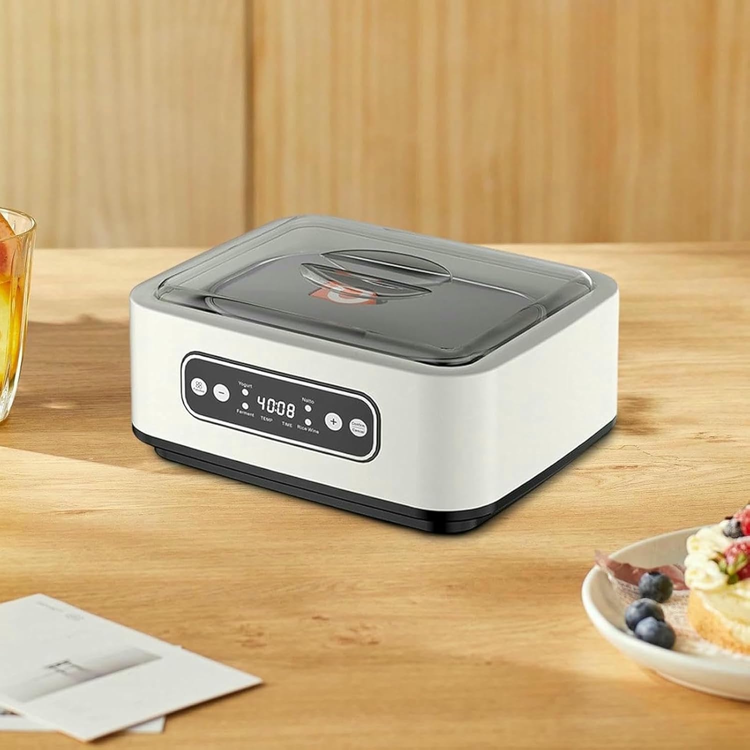 Description: - 【Versatile 】:This automatic yogurt maker is not just for yogurt; it also functions as a natto maker, offering a variety of homemade fermented delights - 【 Touchscreen Operate】:Yogurt machine featuring an easy to use touchscreen interface, this machine ensures a seamless experience - 【Temperature Control】: Equipped with microcomputer controlled constant temperature technology. The 360° heat circulation ensures thorough fermentation, resulting in smooth and evenly textured yogurt. - 【Convenient Timing Function】:With its smart timing feature, you can set the process to suit your schedule, adjustable from 8 to 12 hours according to personal preference - 【Materials】:Made from PP and a 304 stainless steel inner container along with a ceramic inner pot, this homemade yogurt machine is sturdy for long term useSpecification: - Power: 15W - Capacity:1.2LSize Chart:21.6cmx21.6cmx15cm/8.50inchx8.50inchx5.91inchPackage Includes:1 Yogurt Maker (US Plug)1 User ManualNote:Please allow slightly errors due to manual measurement and different monitors.