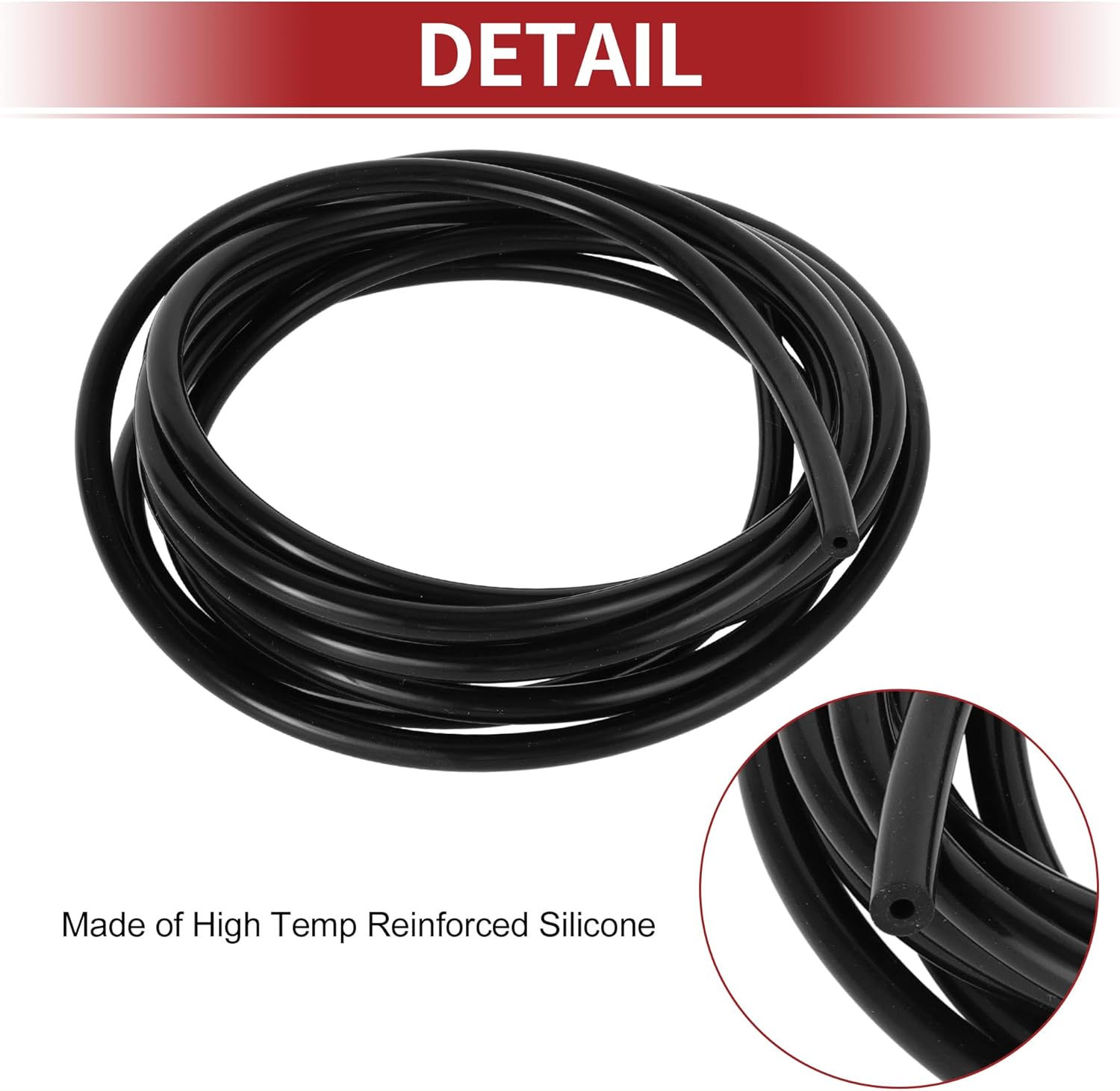 Fitment : Suitable for automotive vacuum pipes, windshield washer fluid vacuum hoses, turbochargers, intake components, etc. Material : Made of reinforced high-temperature silicone, no smell-- irritating, high-heat resistance and no collapse. Easy installation: This silicone vacuum tube is easy to use, you can easily cut it to the appropriate length according to your usage requirements, convenient to replace old hoses. Specification: Type: Vacuum Hose, Color: Black, Material: Silicone, Wall Thickness: 2mm / 0.08" Information : Working Pressure: 43 PSI, Burst Pressure: 100 PSI (High Temperature), 130 PSI (Ambient Temperature), Temperature Range: -40°F to 428°F (-40°C to 220°C). Note: Must be under the rated working pressure and temperature if you want to keep this silicone tubing in a long term service life. Package list: 1 x silicone hose tube