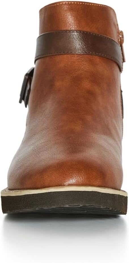 Move from morning to night in the Valentina Ankle Boot. Complete in a wide width fit and cushioned insoles, run errands in style with the buckle detailing and faux-leather finish. Key Features Include:- Round toe ankle boot- Wide width fit- Side zip closure- Cushioned Cloudwalkers insole- Faux leather finish- Contrast strappy accents with buckle detail- Flat soleFor off-duty styling, wear with skinny jeans and a denim jacket.100% Man made materials.br>WIPE CLEAN WITH DAMP CLOTHbr>Imported