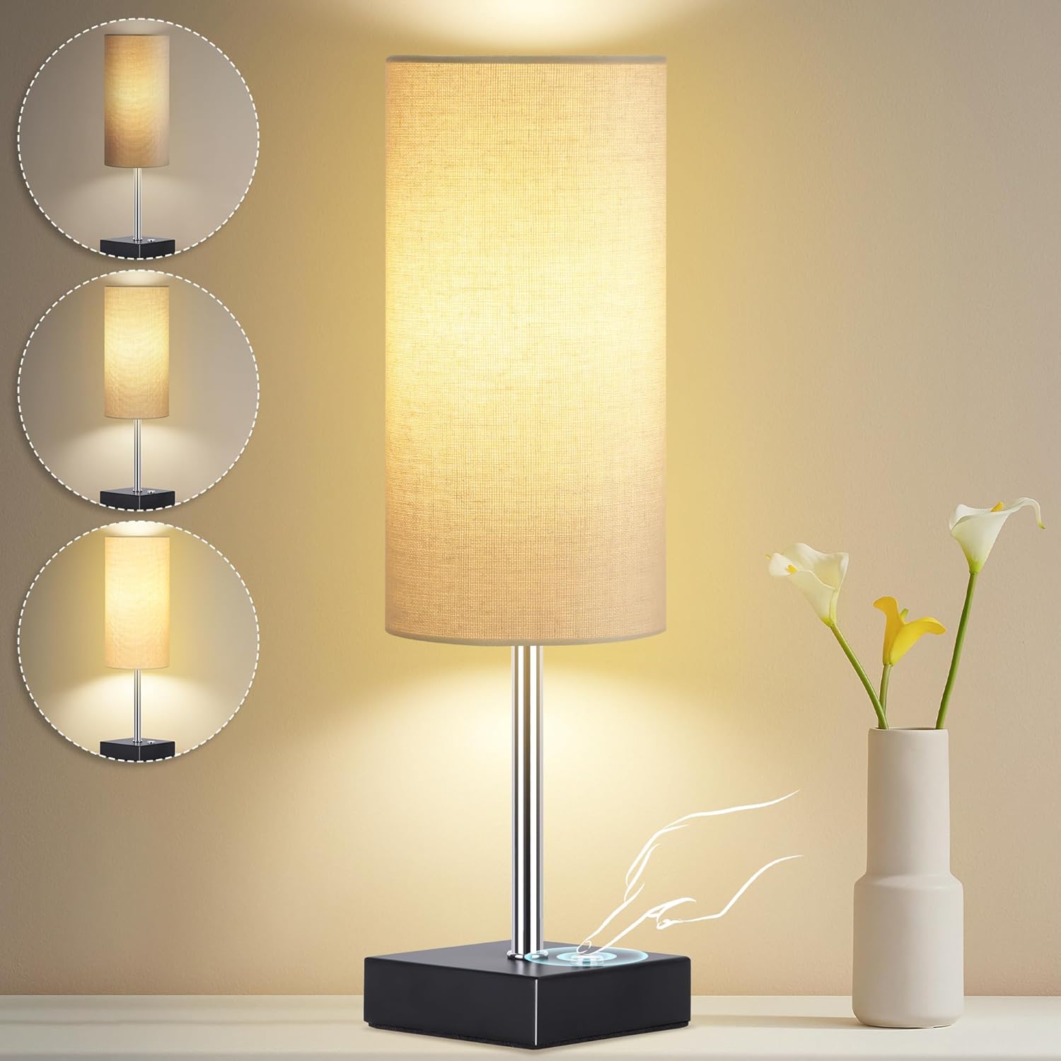 ENERGY SAVING LED TABLE LAMP - For your convenience, we have equipped a free 3W energy saving light bulb with low power consumption, by choosing the right brightness of the cordless table lamp, it not only meets different daily lighting needs, but also the battery-powered table lamp saves energy and prolongs the life of the light bulb, which is energy saving and environmentally friendly PRACTICAL RECHARGEABLE TABLE LAMP - This table lamp comes with battery charging mode, cordless table lamp with oatmeal/linen/pink/gray/white/black/blue table lamp shades to choose from, charging for 3 hours (5V2A) high grade brightness can illuminate for 8 hours, the LED bedroom lamp brings long-lasting illumination to your life Dimmable Bedside Lamp - This living room table lamp offers 3 levels of brightness (low, medium and high). Simply touch the dots to adjust the light to meet your different needs. The low brightness of the nightstand table lamp allows you to sleep or nurse peacefully. The medium brightness of the living room lamp allows you to watch TV shows or movies and enjoy cozy moments. The reading lamp lights up again with high brightness for studying or working. You can find the perfect lighting atmosphere effortlessly PORTABLE LIGHTING: The touch table lamp features a simple and lightweight design that can be placed wherever you need it.Whether you're working late at your desk, reading in bed, or watching a movie in the living room, this battery-powered LED light creates a cozy atmosphere and illuminates every corner of your home PERFECT GIFT CHOICE: The cordless lamp has a sleek and minimalist design that matches a variety of scenes and styles, and it also makes a perfect gift. It can be used as an ambient light for various holidays and birthday parties. The rechargeable cordless LED desk lamp is suitable for bedroom, reading room, office, restaurant, cafe, bar, hotel and other indoor lighting places