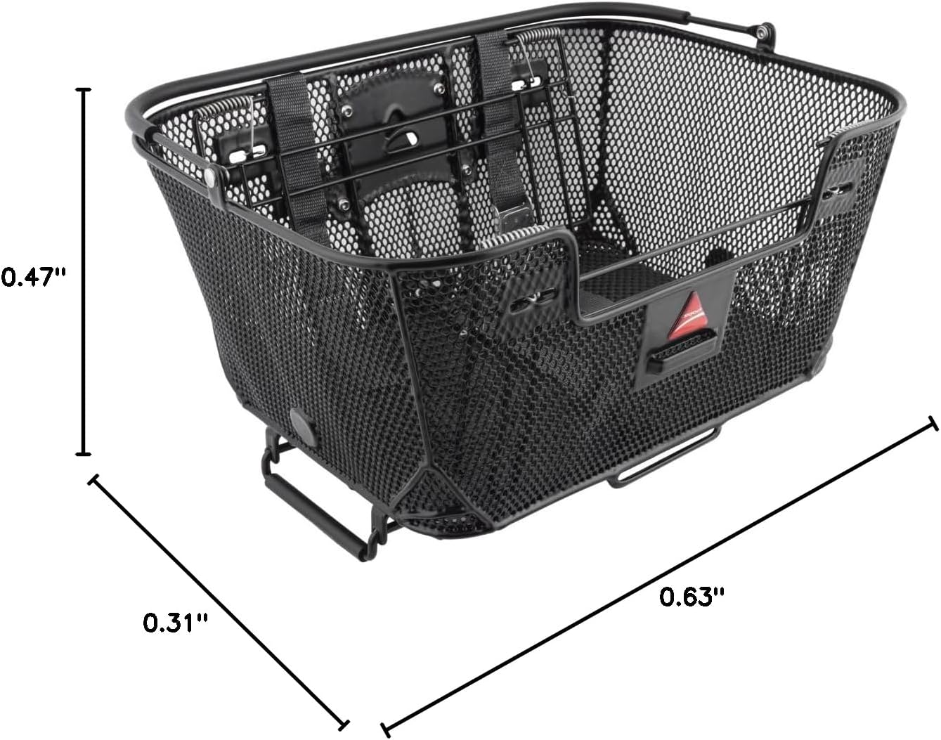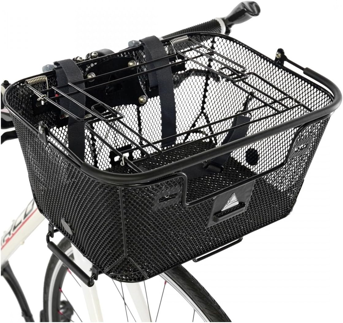 Now pets can ride along. Durable reinforced, coated steel constructionMaximum Pet Weight: 12lbs on handle bar (including basket weight)/ 50lbs on rack (including basket weight)Adjustable tether leash (7.5 - 14") includedPadded carry handle for off-bike useBasket Weight: 1872g / 4.12lbsCan be mounted on handlebar or pannier rackIncludes a 25.4-31.8mm quick-release handlebar bracket and spring-loaded rack attachment hardwareDimensions: 16 x 12 x 8" Item SpecificationsColorBlackTotal Volume22Weight1872MaterialSteelkeyword searchdogkeyword searchdog basketkeyword searchpet carrier